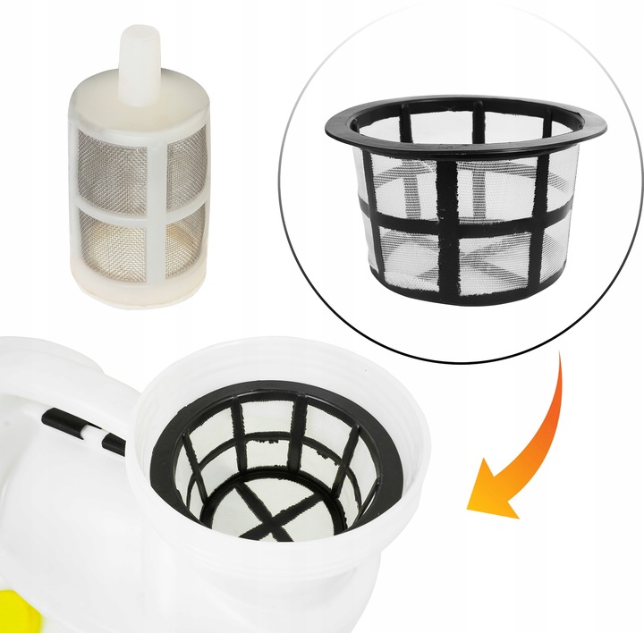 Опрыскиватель оснащен двумя фильтрами. Один побольше на входе, который защищает бак от ненужных примесей. Второй, меньший по размеру, установлен посередине резервуара, чтобы предотвратить выход загрязнений из цилиндра.