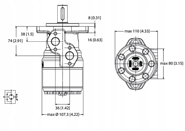 Техническая информация: С отводом утечек масла Роликовая конструкция Подшипник скольжения с широким валом Возможность последовательного подключения с другими двигателями Подходит для использования в закрытых системах Относится к серии орбитальных двигателей среднего размера
