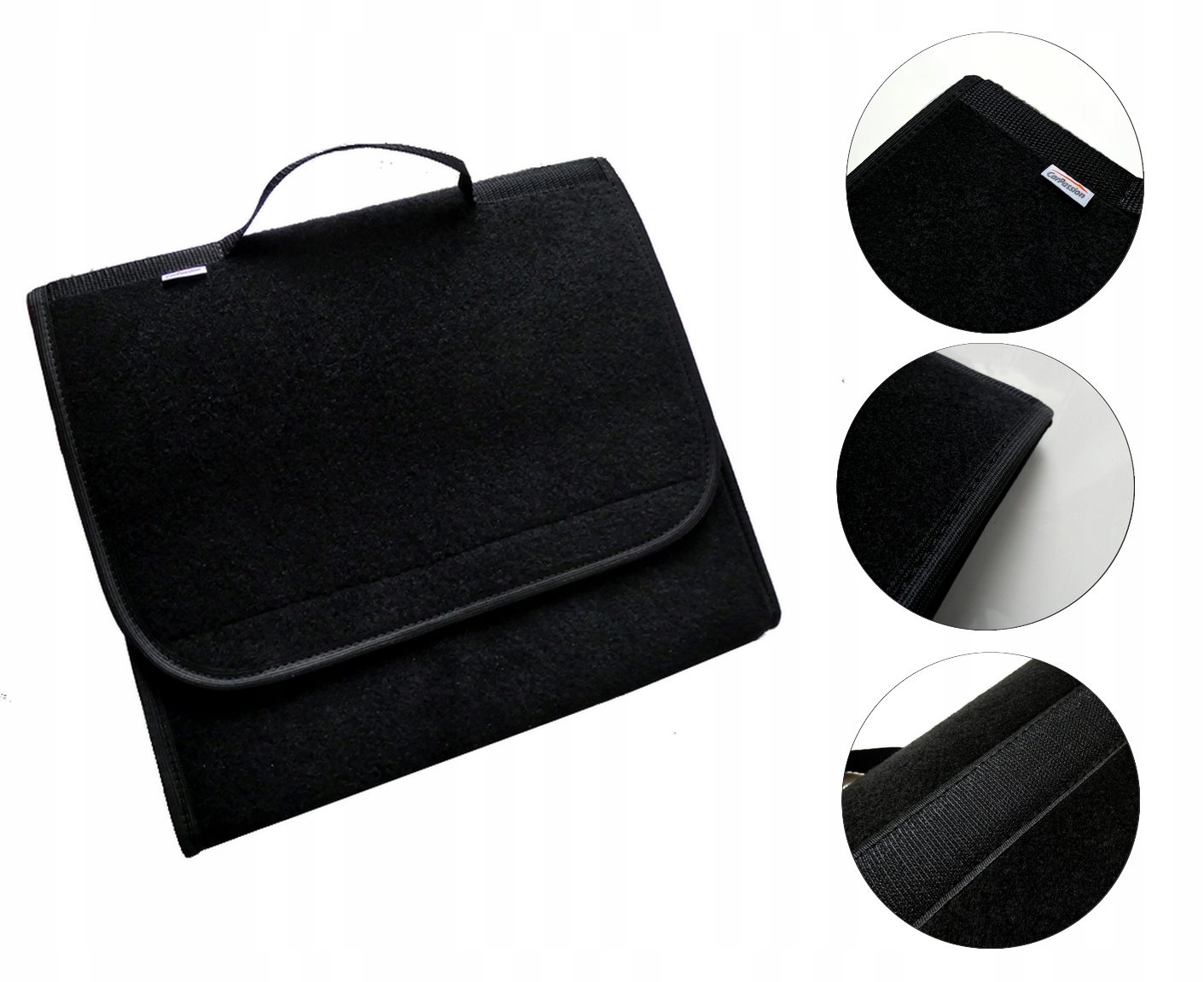 Черная, прочная отделка. Универсальный дизайн подойдет к любому автомобилю. Сумка имеет приглушенный однородный цвет, благодаря чему выглядит хорошо. Органайзер имеет удобную и прочную ручку для переноски.
