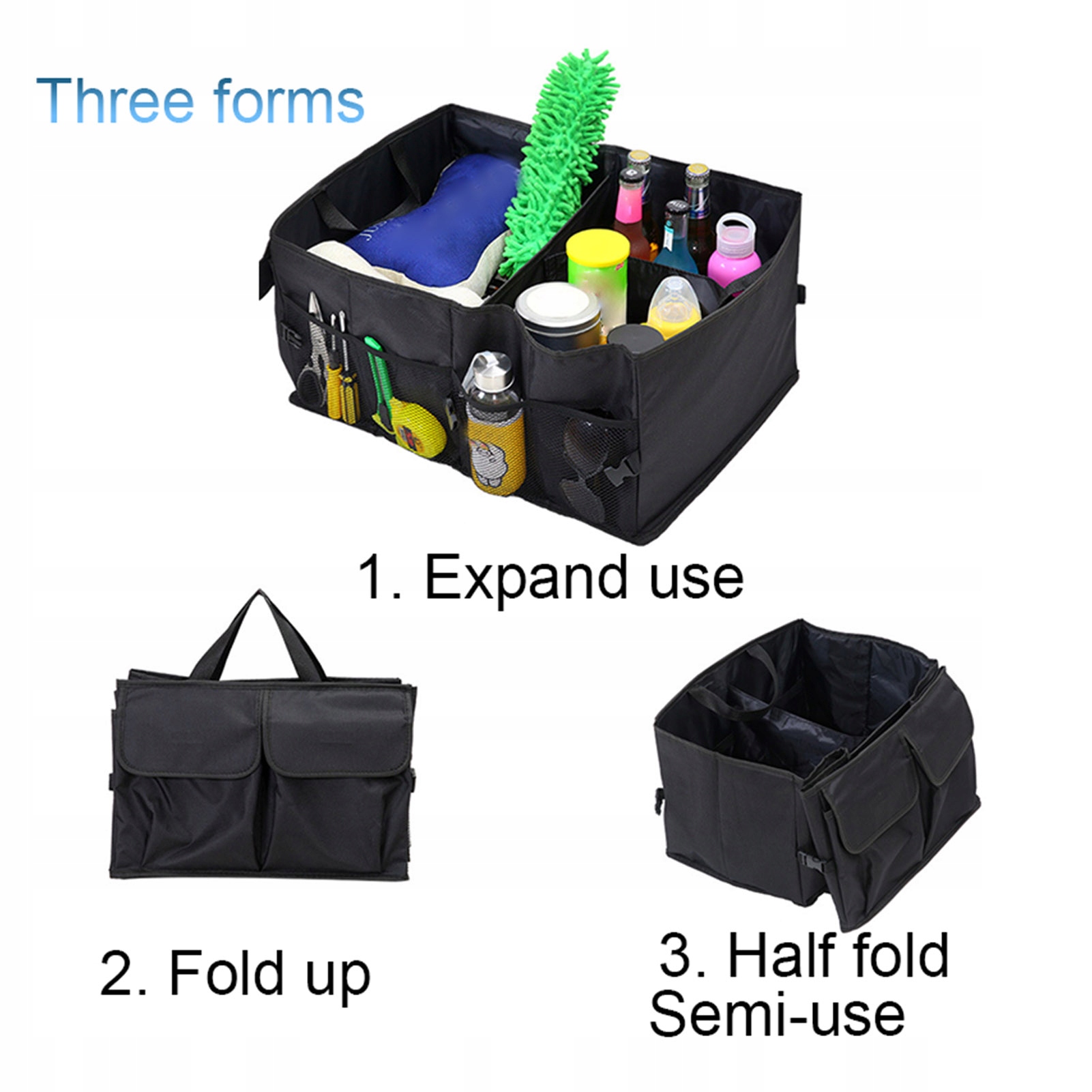 1. Здесь имеется множество отделений для хранения автомобильных инструментов и оборудования, продуктов, сумок для покупок, инструментов для экстренной помощи, чистящих средств, предметов домашнего обихода и т. д.