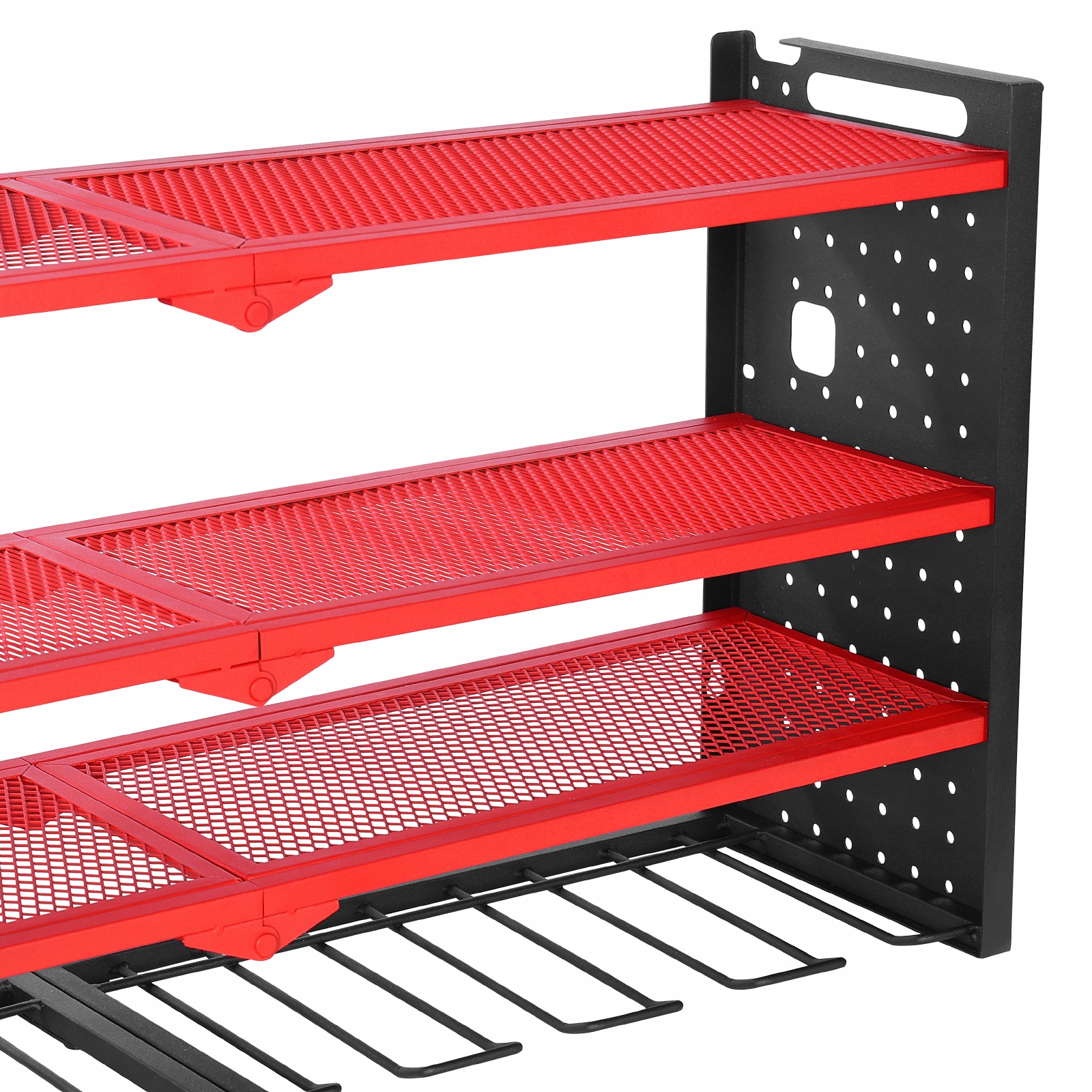 Красный 4-х уровневый органайзер для электроинструментов на стене для гаража