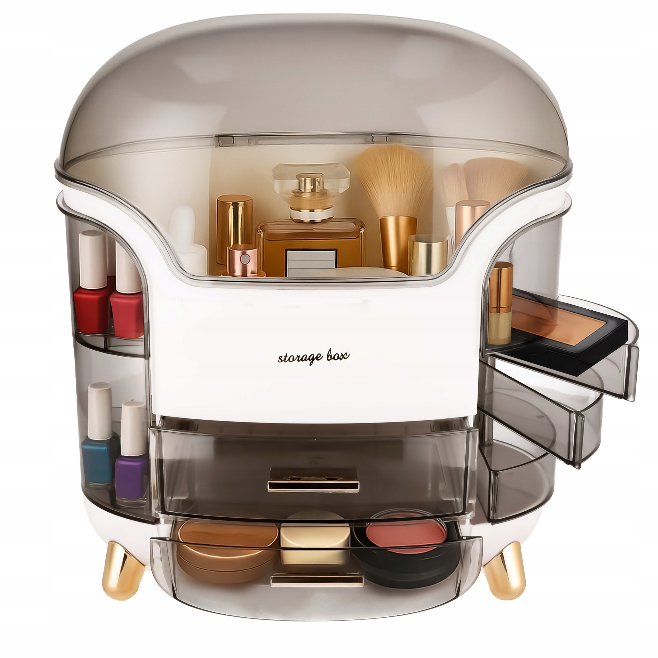 - ✨ Этот практичный органайзер для косметики — решение, сочетающее функциональность с эстетикой. Благодаря многоуровневой конструкции с выдвижными ящиками и открывающейся крышкой вы сможете разместить все свои любимые продукты — от лака для ногтей до больших флаконов тоника или духов.