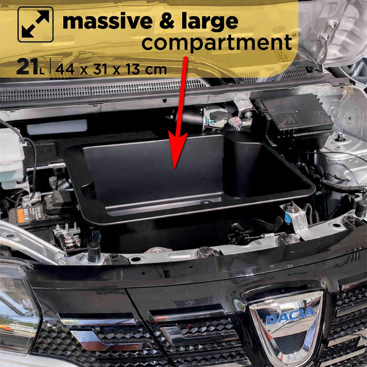 Frunk имеет компактные размеры 44 x Размер 31 x 13 см и объем 20 литров делают его идеальным компаньоном для повседневного использования. Установка стойки проста и занимает около 15 минут благодаря входящему в комплект монтажному комплекту. Благодаря стойке пространство под капотом электромобиля становится не только практичным, но и функциональным и безопасным пространством. чтобы хранить все необходимое во время путешествия. p>