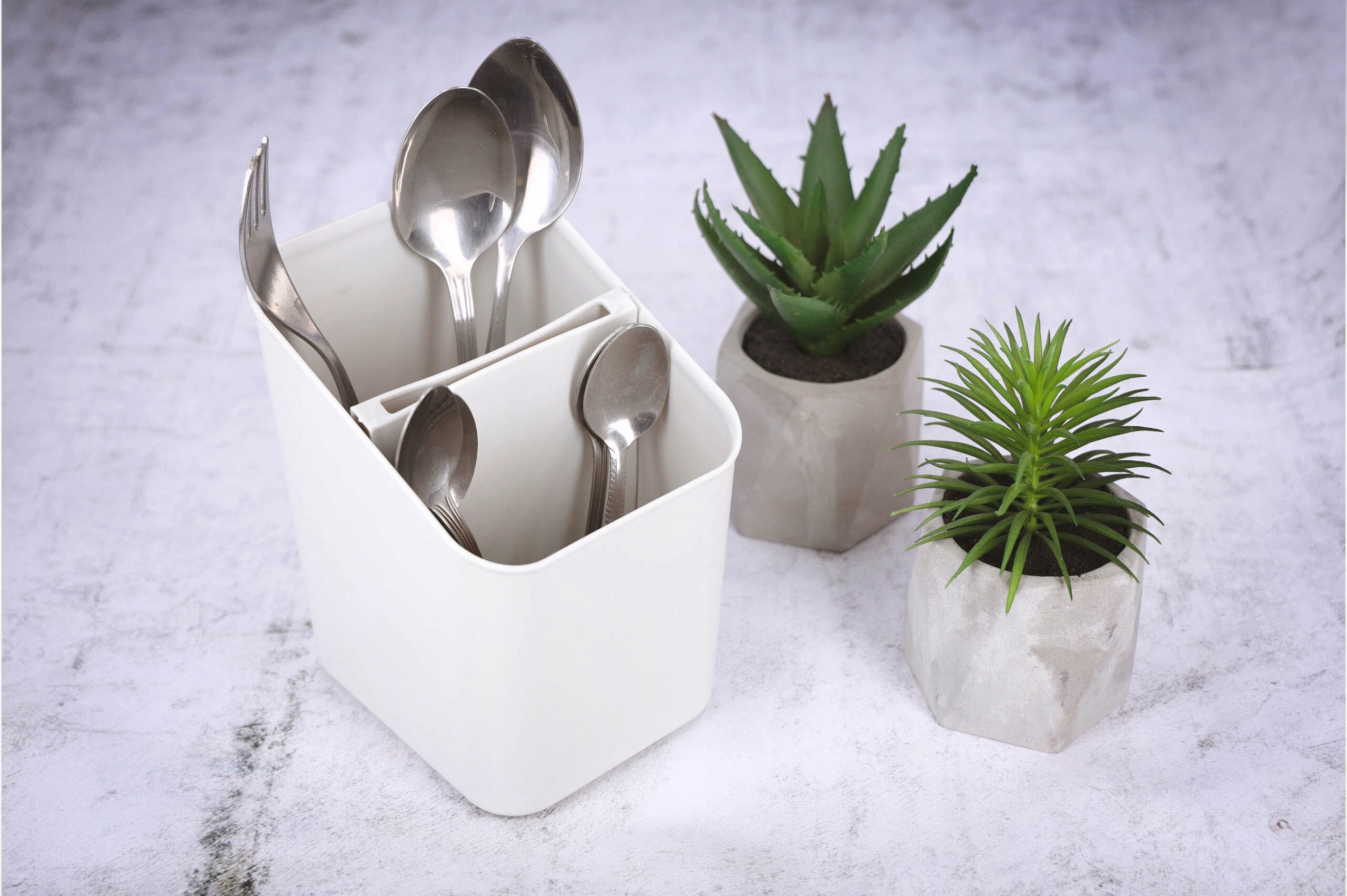 ✅ изготовлен из высококачественного пластика. Чрезвычайно свет. Контейнер имеет размеры 14 х 11 х 16 см. Благодаря этому столовые приборы и аксессуары будут иметь свое место. Вытащив вставку, мы получаем контейнер с одним отверстием. Очистка контейнера очень удобна, мы можем использовать его в посудомоечной машине. 11 см