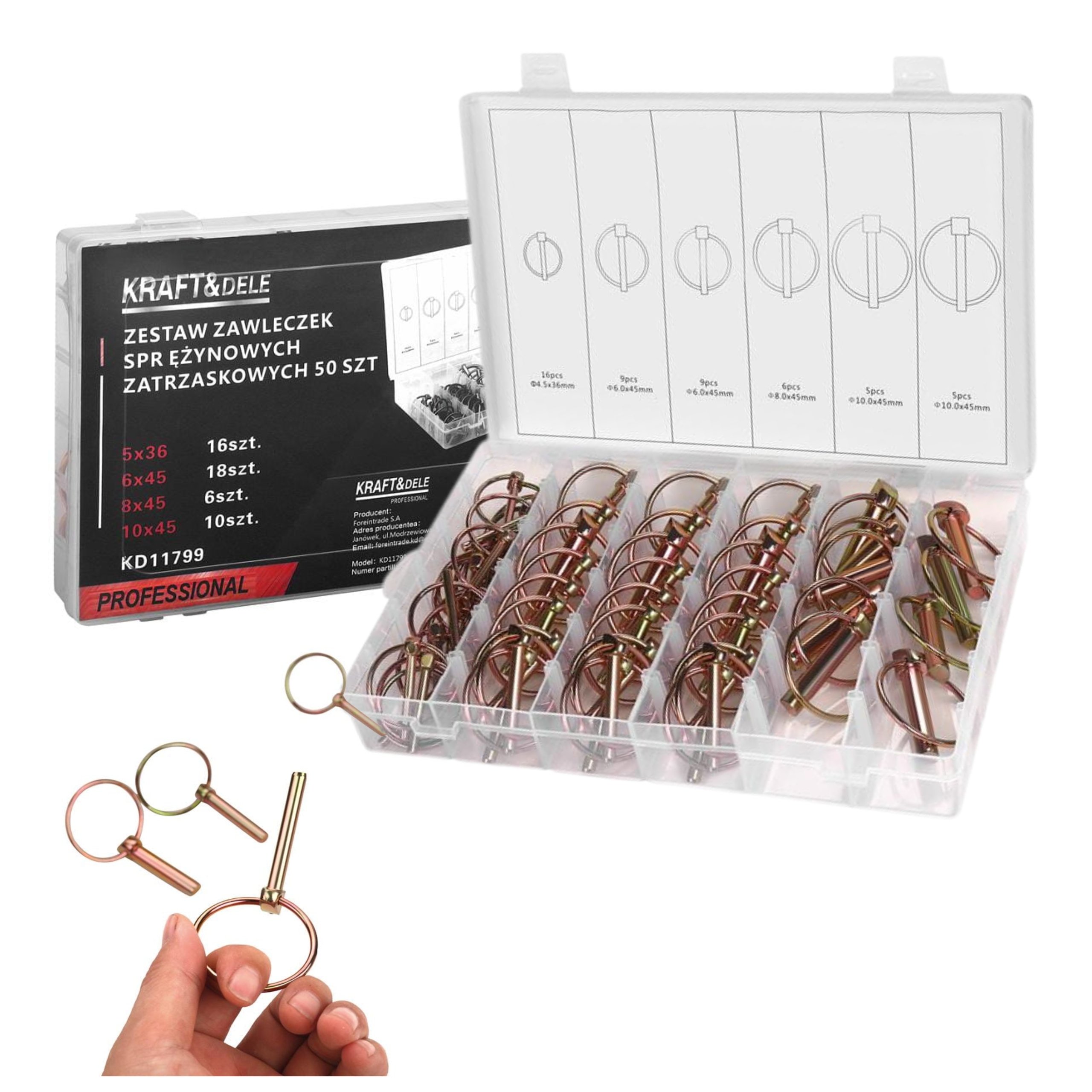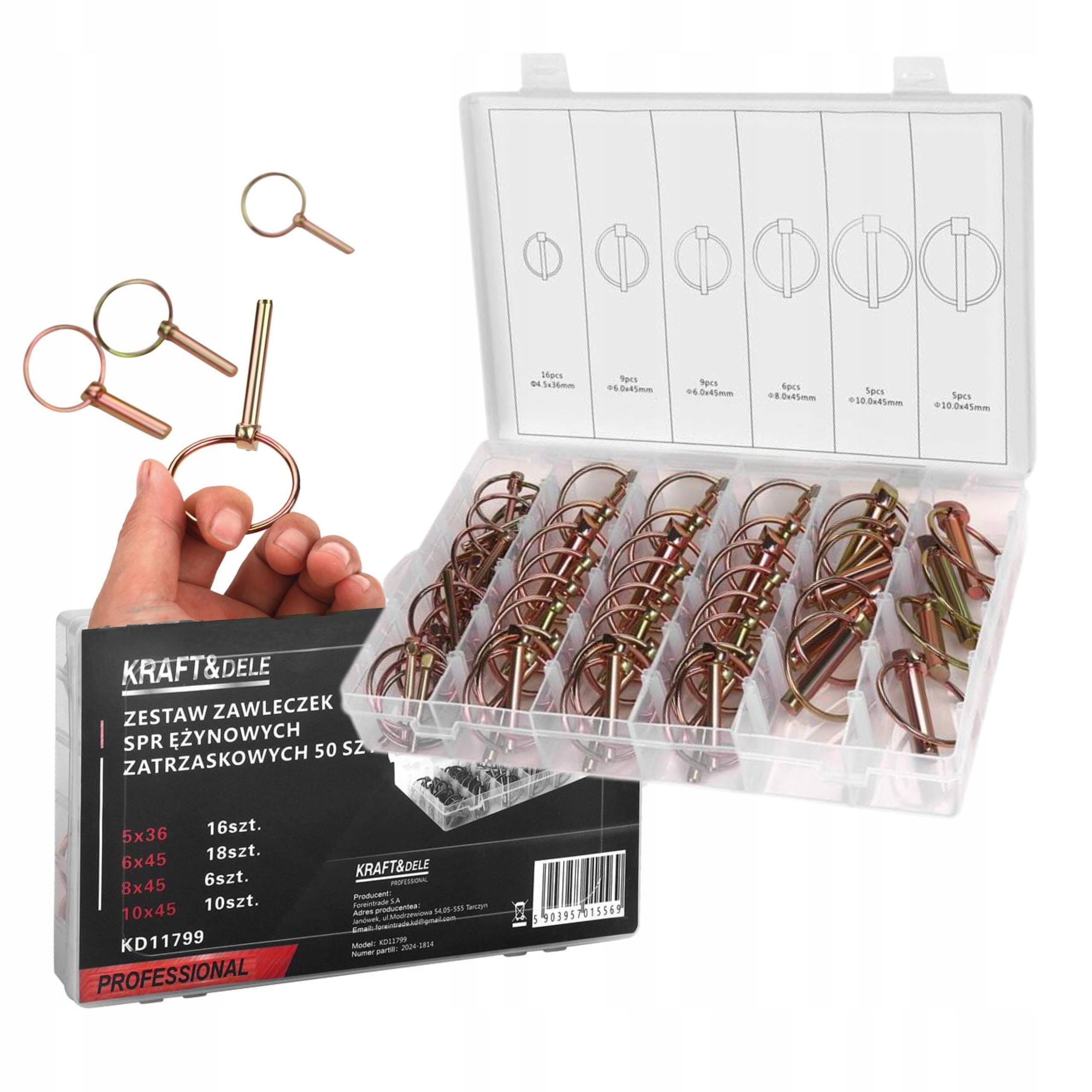 ПРУЖИННЫЕ СТОПОРНЫЕ ШТИФТЫ 50 ЭЛЕМЕНТОВ ОРГАНАЙЗЕР Kraft&Dele KD11799