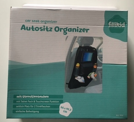 Организатор Fillikid прикреплен и регулируется путем прикрепления двумя зажимами, благодаря тому, что он подходит для большинства автомобильных сидений.