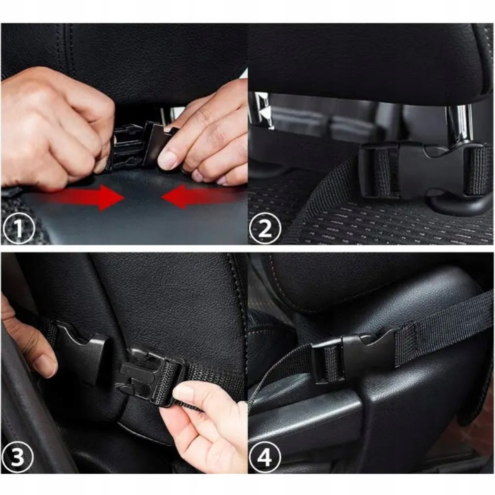 1⃣ Распространите органайзер и прикрепите верхнюю застежку, прикрепляя пряжку под главнокомандующим стулом.