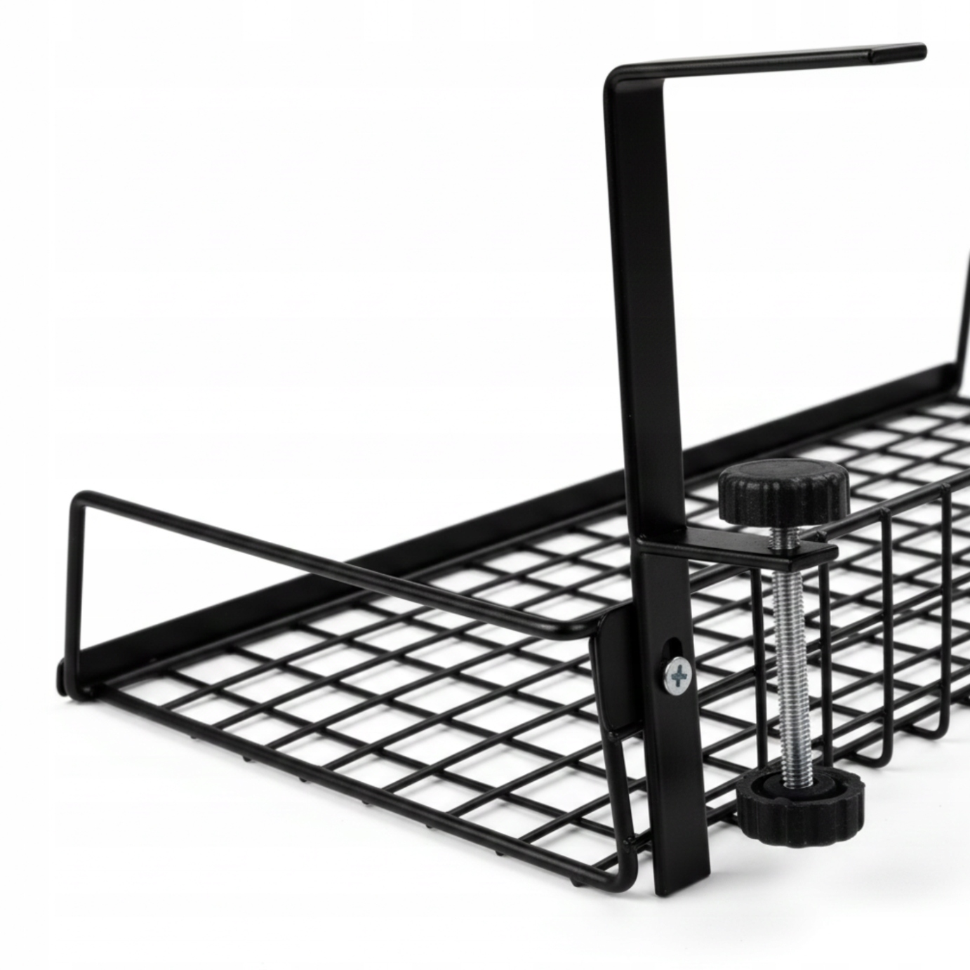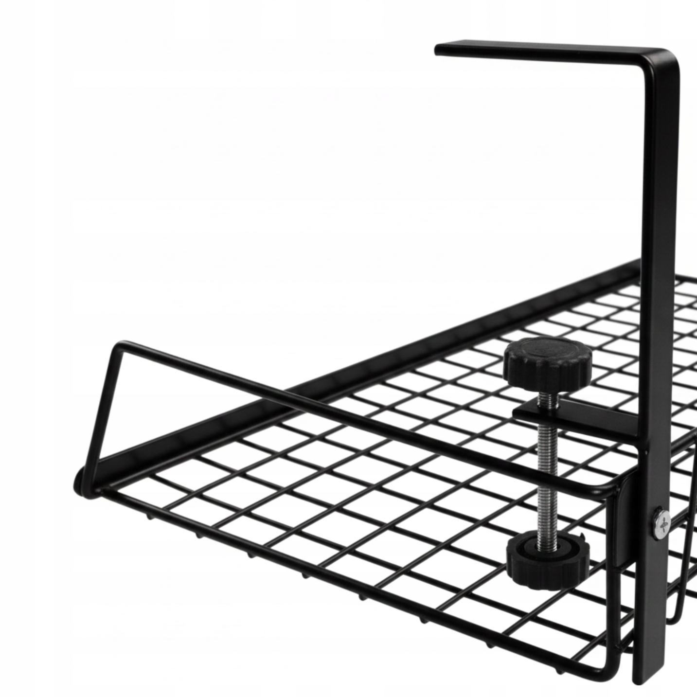 Металлическая полка, крепящаяся к столу для удлинителей, зарядных устройств и мелких аксессуаров – практичное решение для вашего рабочего места!