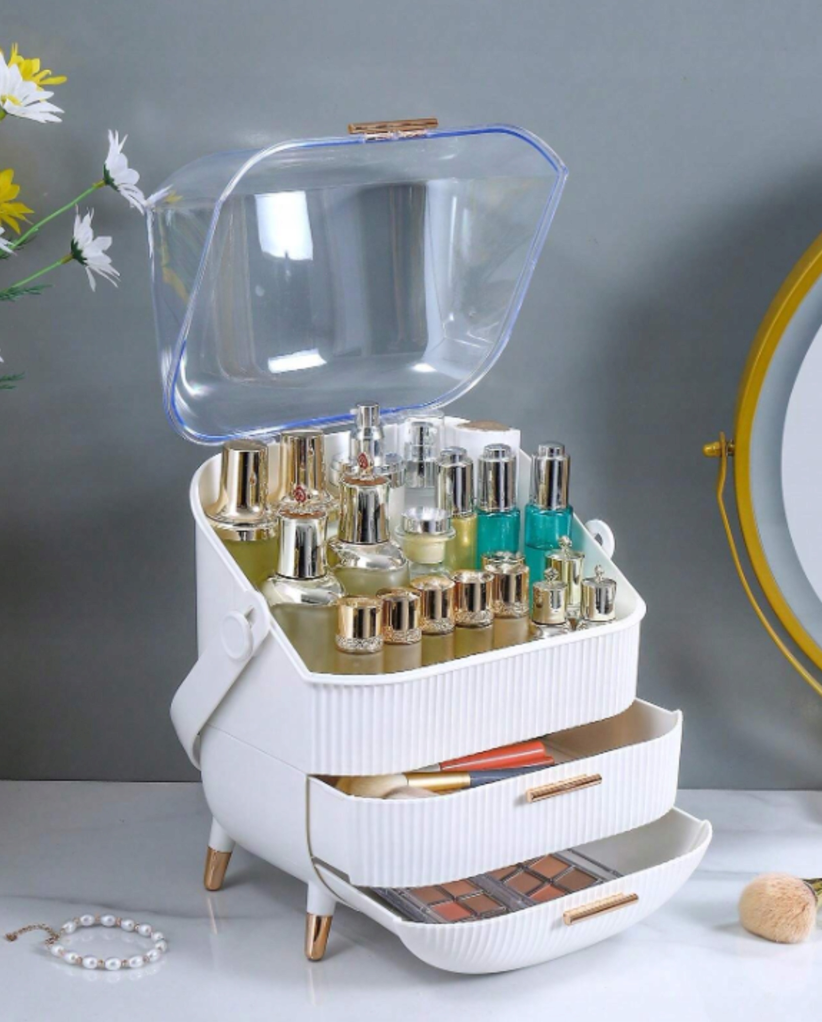 Расположите свою любимую косметику в нашем элегантном белом органайзере! Этот практичный и стильный органайзер — идеальное решение для всех любителей макияжа и ежедневного ухода, которые хотят поддерживать порядок в своей коллекции.