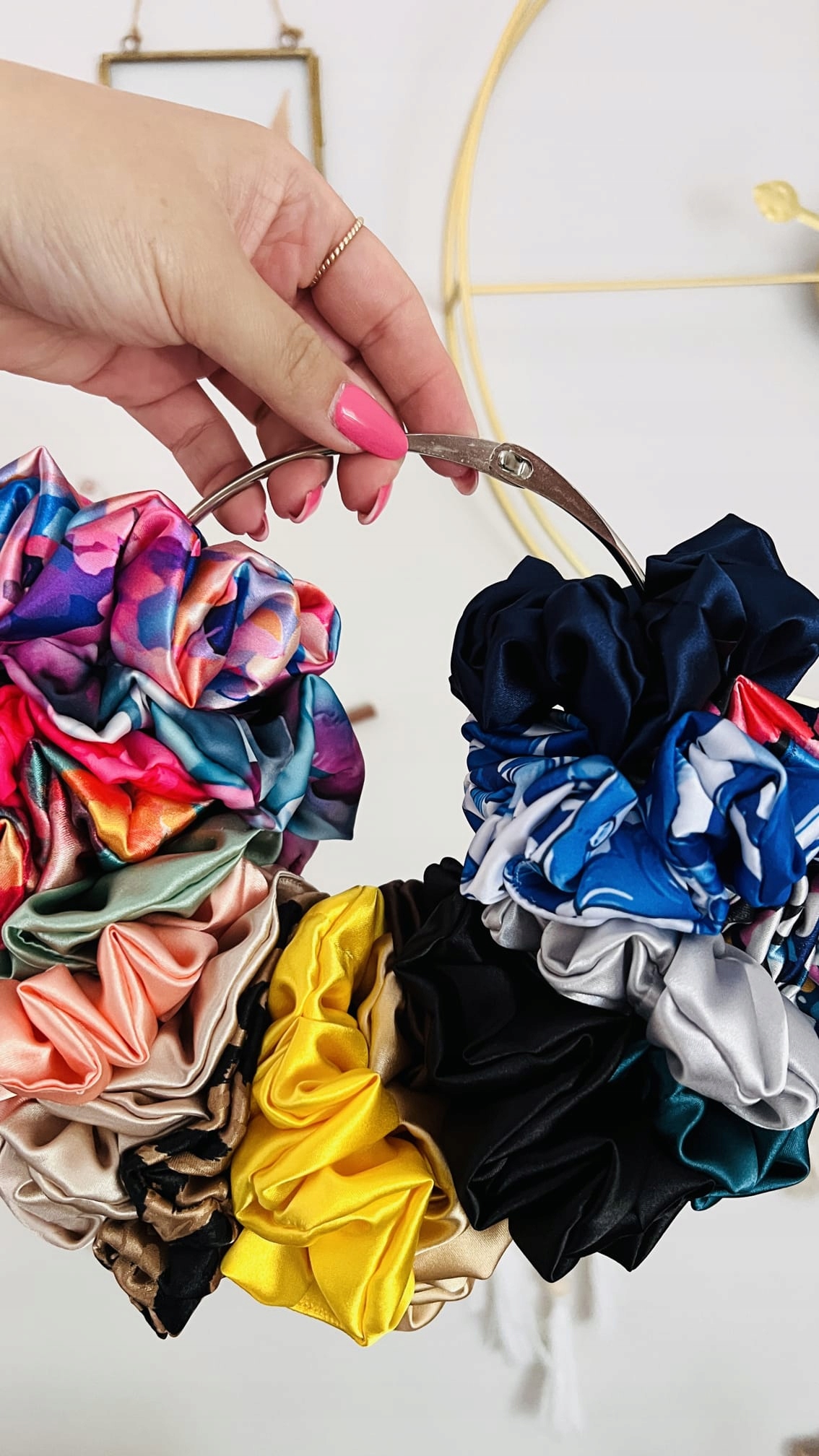 держатель на Scrunchie элегантен и эстетичнее, он найдет свое место в каждом гардеробе, гардеробе или в ванной комнате. будет уникальным подарком для каждой девушки и маньяка для волос, в котором много аксессуаров для волос.