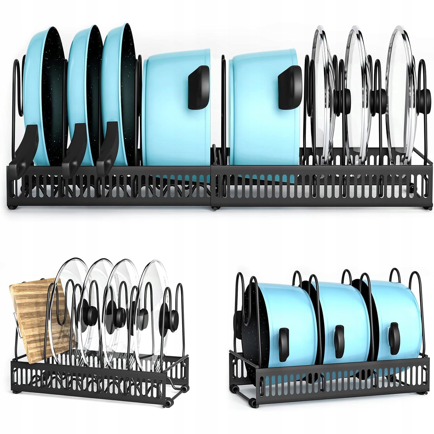 💎Прочность и долговечность –наши подставки для кастрюль изготовлены из высококачественного железа. 10 регулируемых перегородок обеспечивают стабильную и безопасную установку всех типов крышек и кастрюль.