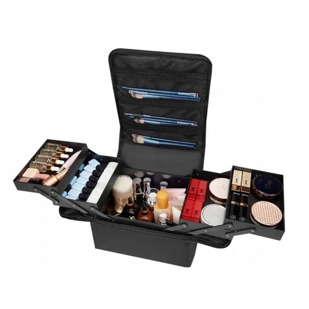 У нее есть 4 выдвижных отделения и 1 большое нижнее отделение для ежедневных косметических нужд, например для косметики. во время путешествия.