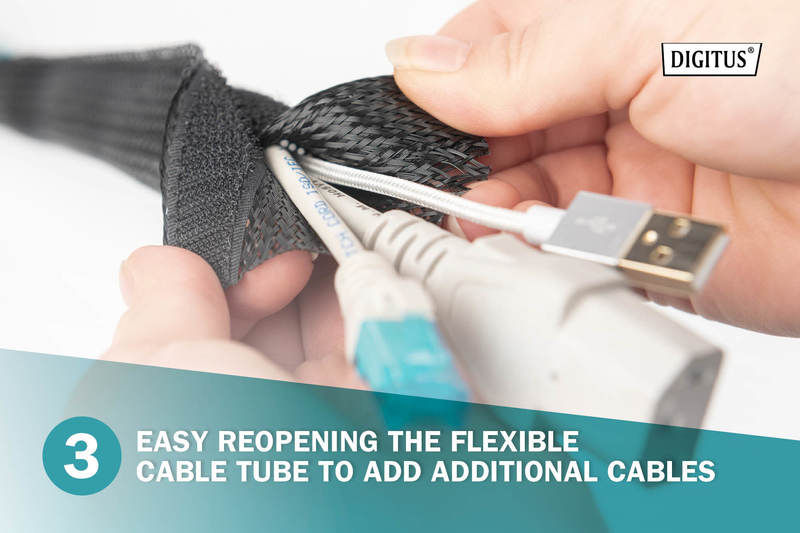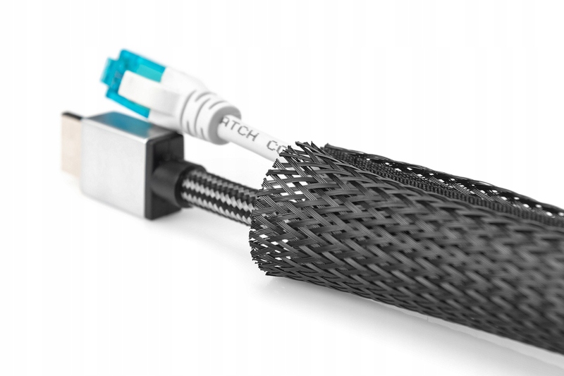 - кабельный шланг подходит для жгутов кабелей диаметром до 5 см, что делает его идеальным для предотвращения спутывания кабелей.