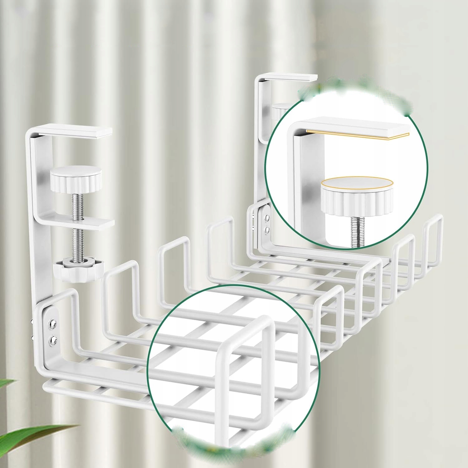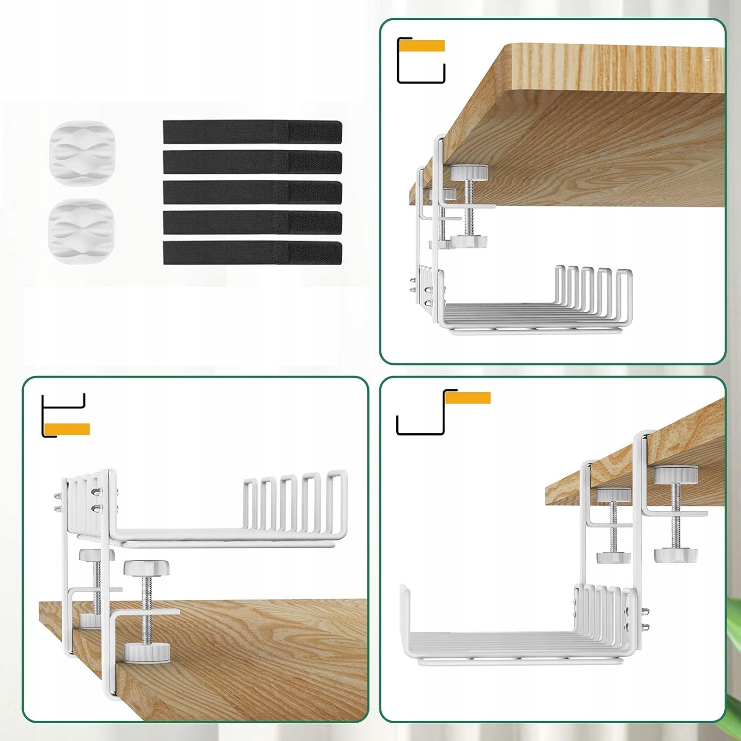 Легко установка, его можно установить в течение 3 минут. Организатор на кабелях под столом с зажимом монтаж легко установить и разобрать без бурения или склеивания и без повреждения стола. Вы можете легко изменить свою позицию, если это необходимо.