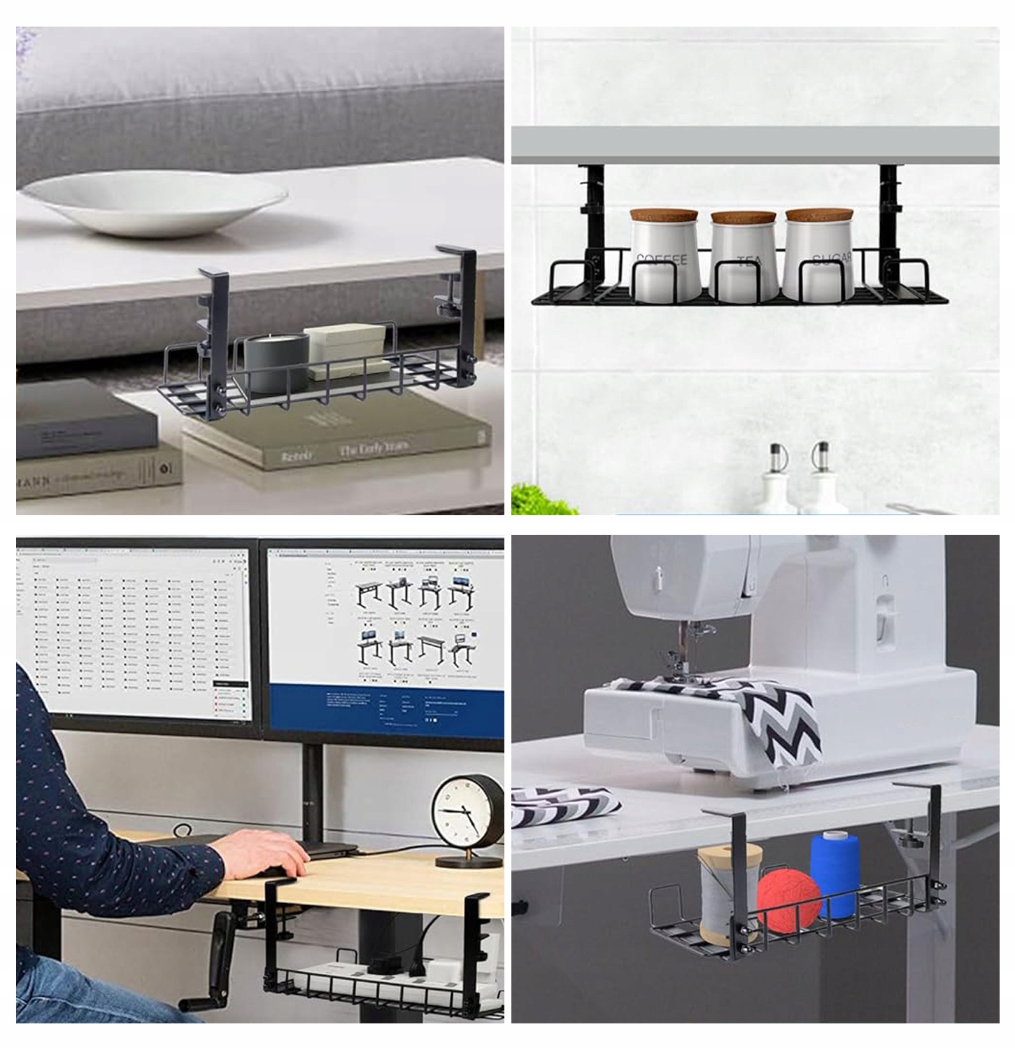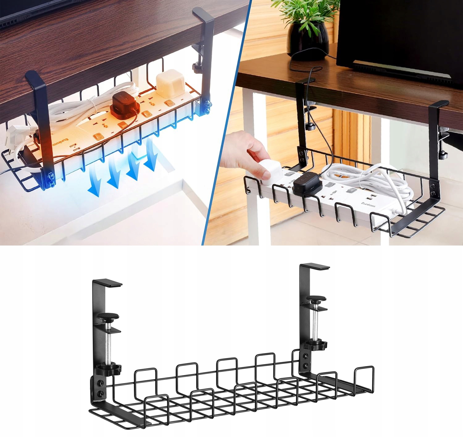 Легко установка, его можно установить в течение 3 минут. Организатор на кабелях под столом с зажимом монтаж легко установить и разобрать без бурения или склеивания и без повреждения стола. Вы можете легко изменить свою позицию, если это необходимо.