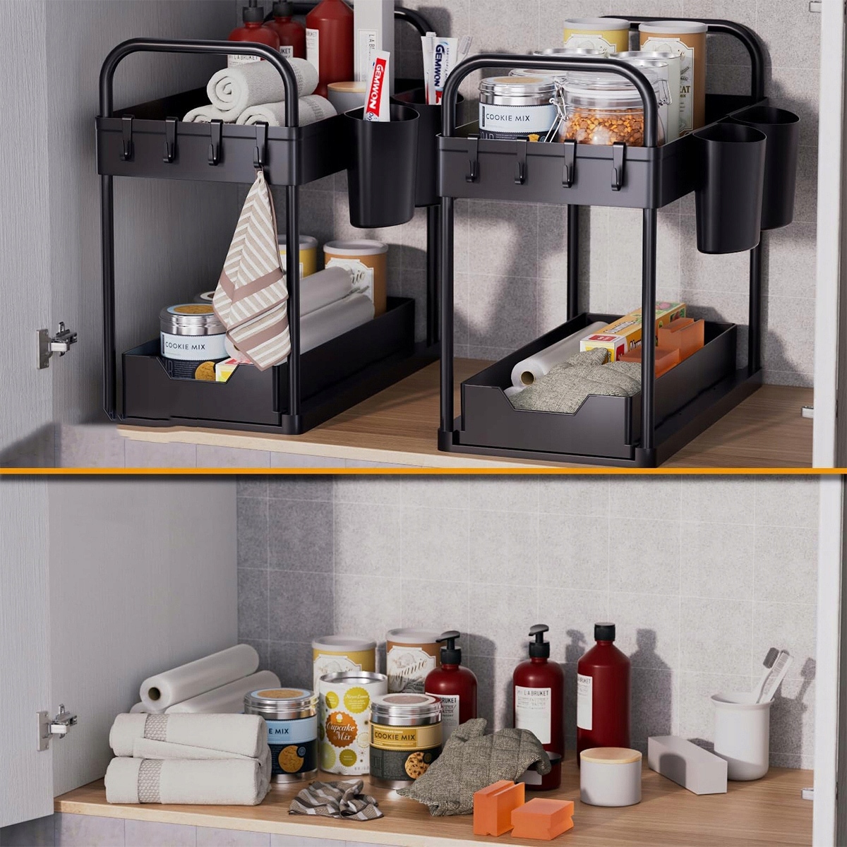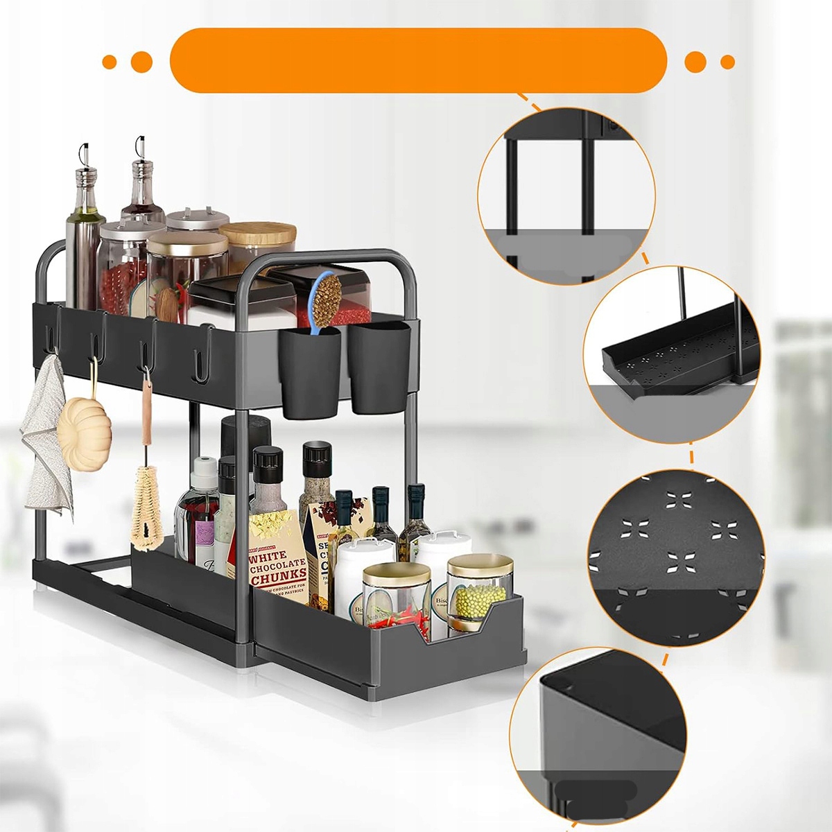 ⭐⭐⭐2-часовой кухонный организатор, двухуровневая полка под раковиной с 4 крючками и 2 чашками, организатором для шкафа для раковины, организатором ванной комнаты, организатором шкафа, системой организаторов для кухни, домашнего хозяйства, домохозяйства и квартир (черный) ⭐⭐⭐ h1>