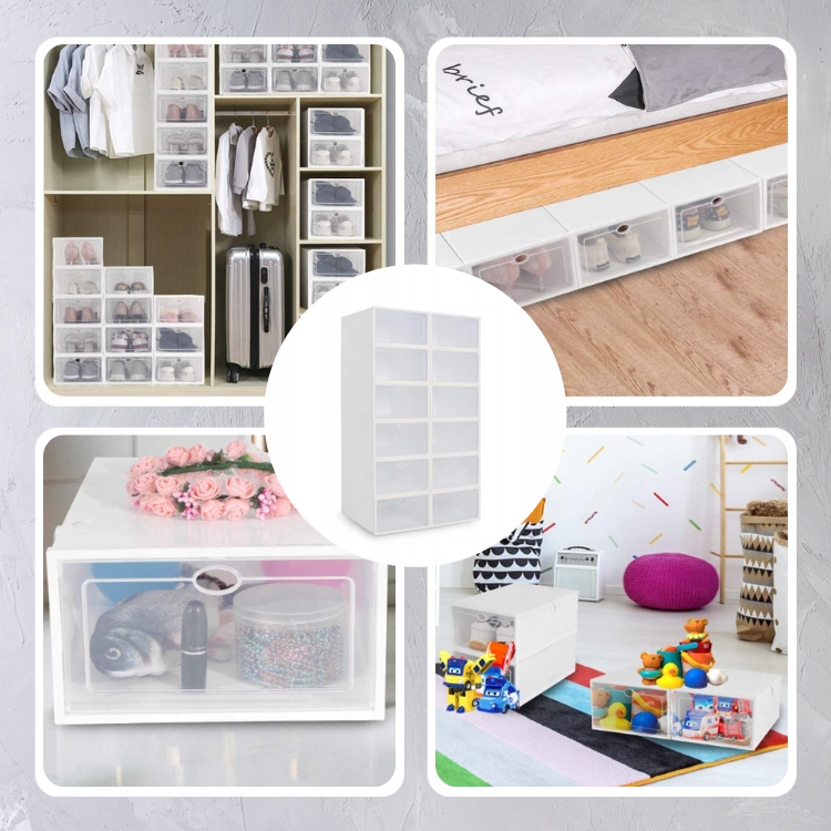 Набор из 10 коробок позволит вам разобраться в сезонных, спортивных, повседневных и элегантных обуви - так что у каждой пары есть свое место. Больше не нужно бросить их на дно гардероба.