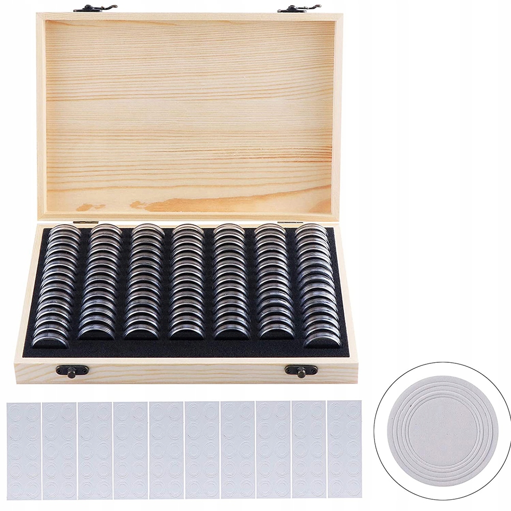 🪙ЯЩИК ДЛЯ ХРАНЕНИЯ МОНЕТ ДЕРЕВЯННЫЙ КОНТЕЙНЕР ДЛЯ МОНЕТ С 100 КРУГЛЫМИ КАПСУЛАМИ ДЛЯ МОНЕТ 18/20/23/25/27/30 ММ