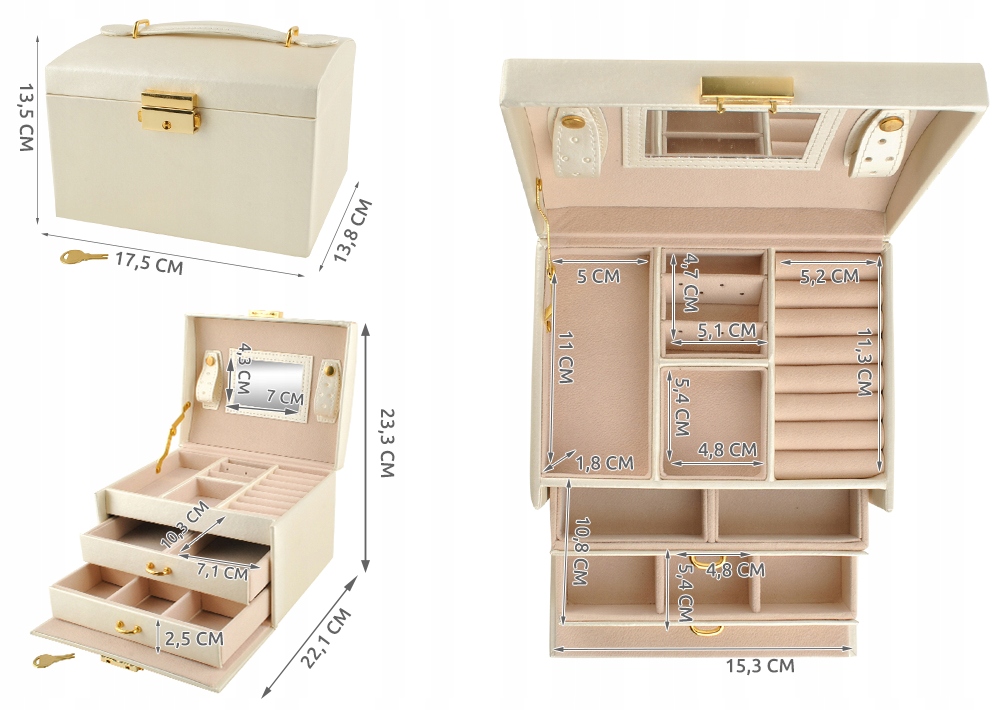 <ул>Шкатулка красиво украсит ваши украшения и защитит их от повреждений и потерь. Отныне все в одном месте, забудьте о поиске украшений – всегда под рукой. Наслаждайтесь прекрасно организованным хранением мелких вещей и ценных вещей.