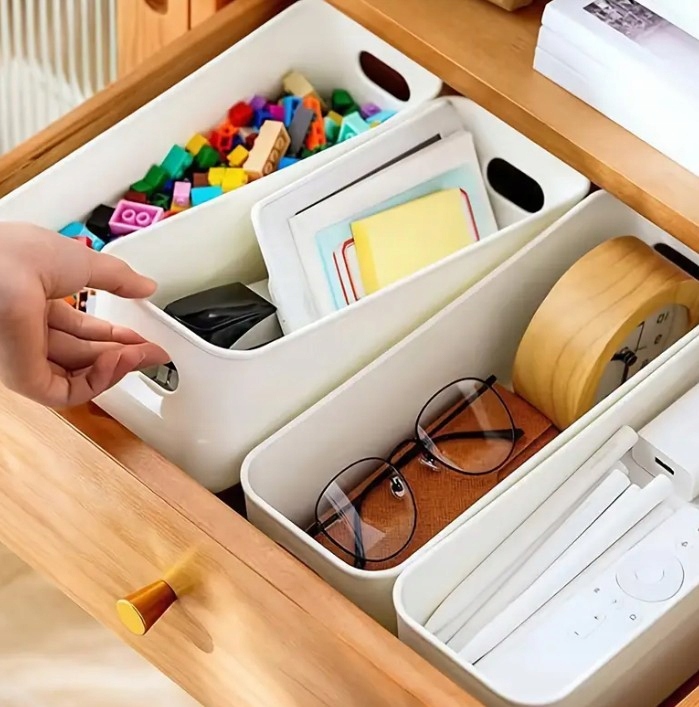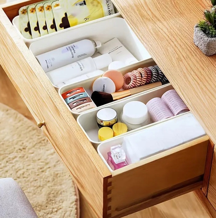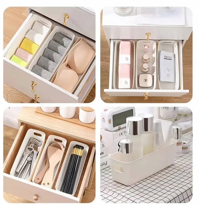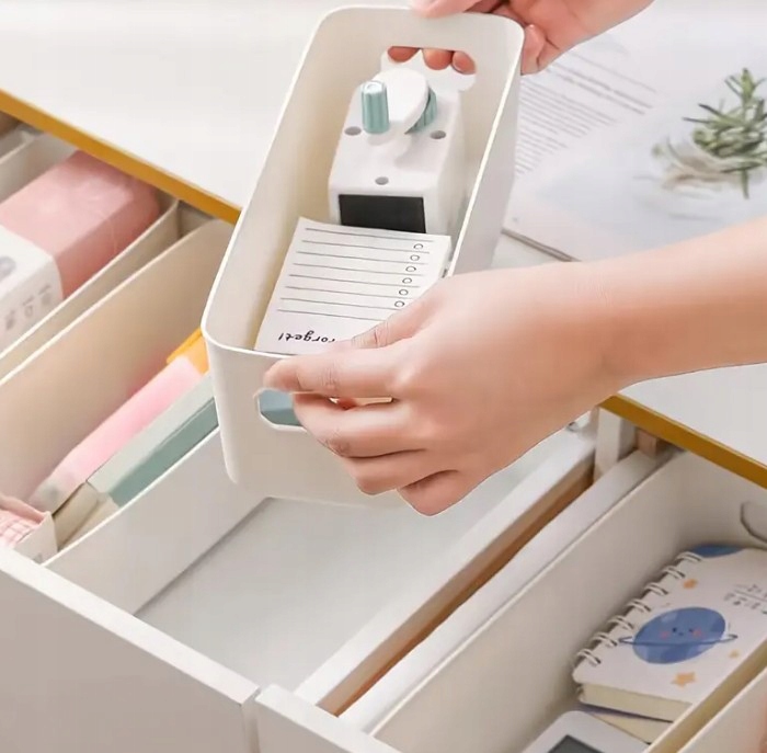 ВСТАВКА В ЯЩИК КОНТЕЙНЕР КОРЗИНА-ОРГАНИЗАТОР ДЛЯ КОСМЕТИКИ, ПЛАСТИК, БЕЛЫЙ