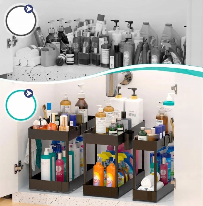 ✔️Два уровня обеспечивают оптимальное использование пространства под раковиной