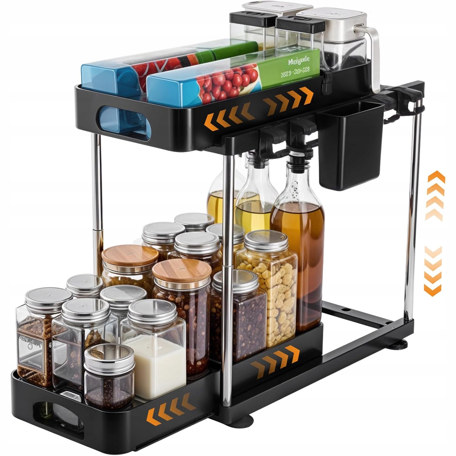 Организаторы и хранение под раковиной, двухуровневые двойные скользящие организаторы ванной комнаты и хранение с организатором крючков под раздвижным шкафным организатором для кухонной раковины на кухне