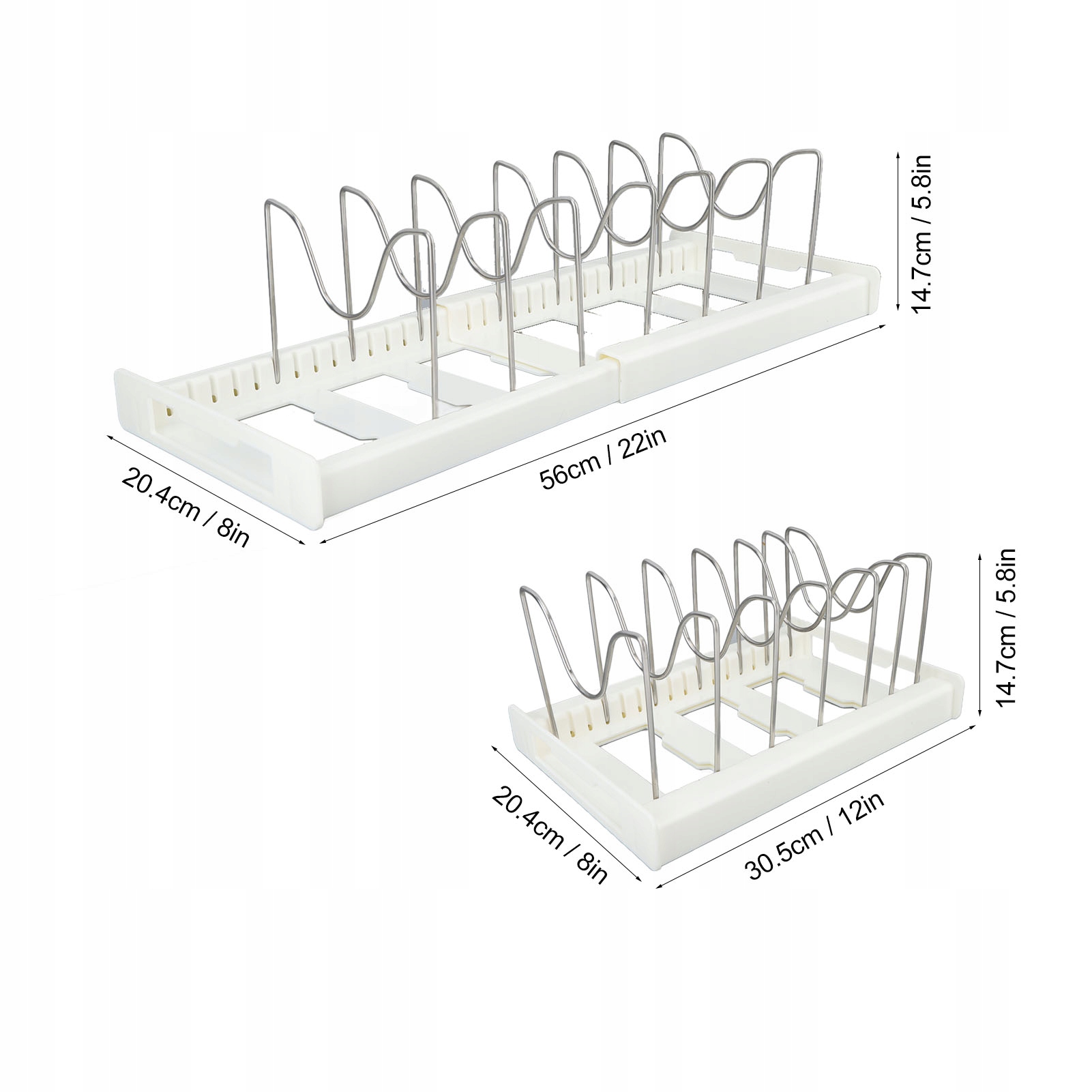 Особенность: 1. РЕГУЛИРУЕМЫЙ РАЗМЕР: эту подставку для кастрюль можно свободно выдвигать и регулировать по размеру в соответствии с вашими потребностями, она подходит для различных кухонных принадлежностей, таких как крышки кастрюль, противни, нарезки и т. д., поэтому она удобна и удобна. практичный.