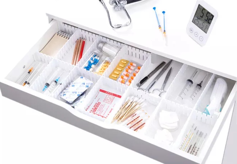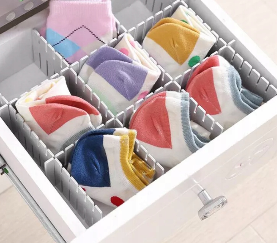 Перегородки позволяют организовать пространство в ящиках или шкафах, отлично подходят для организации нижнего белья, галстуков, медикаментов и других аксессуаров.