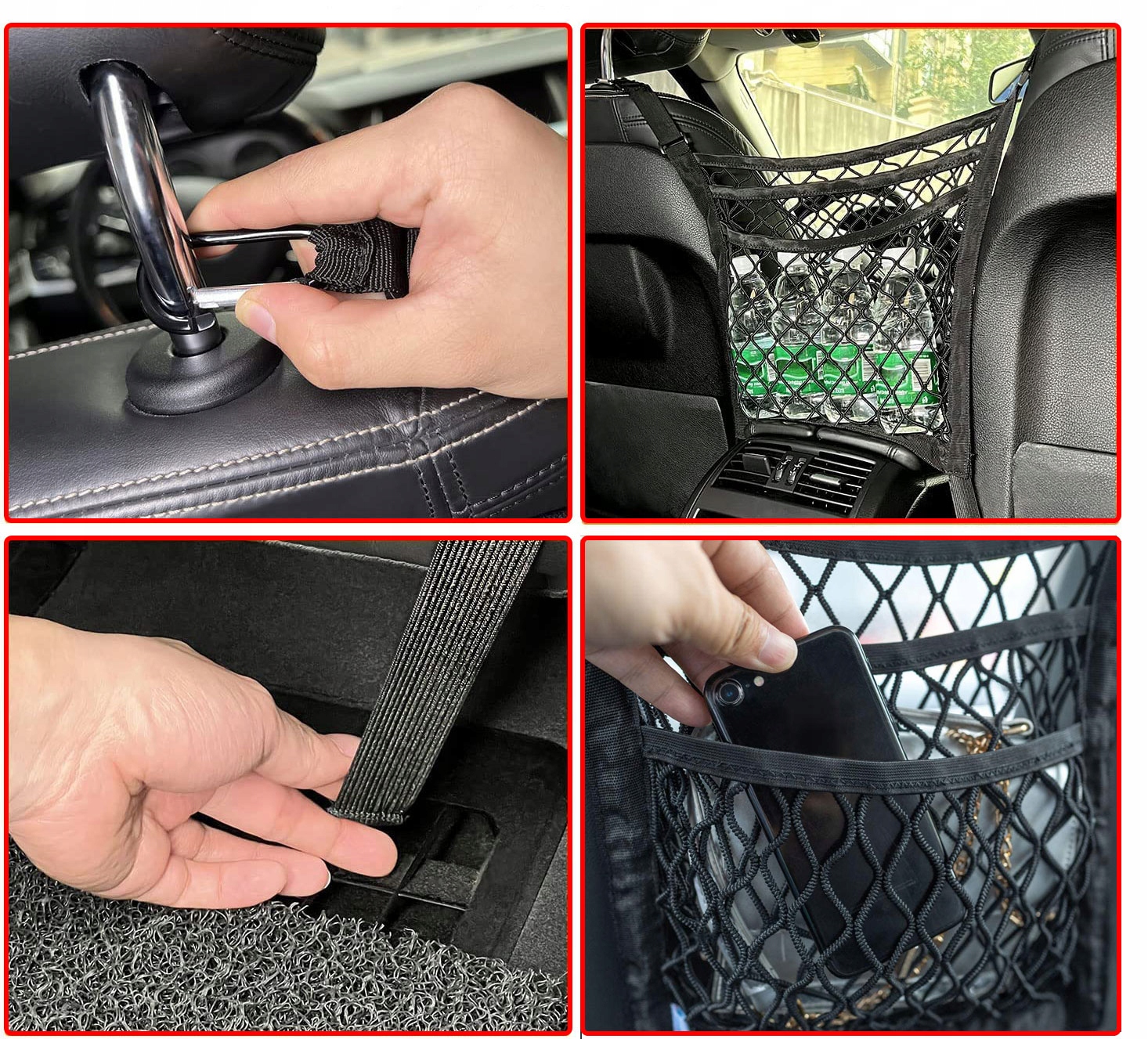 ✅Прочный автомобильный органайзер крепится к подголовникам и нижней части сиденья с помощью металлических карабинов и крючков, что гарантирует, что он не соскользнет и не ослабнет во время езды. Как ✅ сборка, так и разборка сетки для кресел не вызывают никаких проблем.