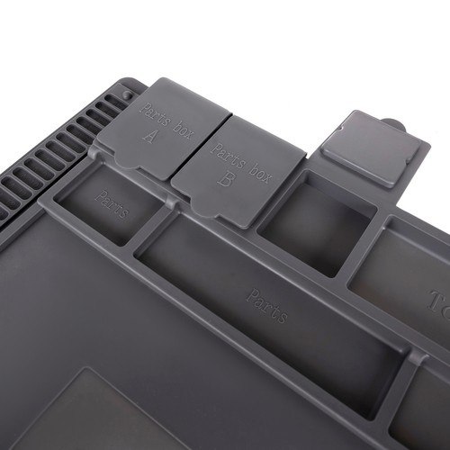 Многофункциональный силиконовый коврик для обслуживания — необходимая вещь для каждого любителя и профессионального мастера-любителя. Это значительно упрощает ремонт электроники и пайку. Устойчив к высоким температурам (до 500 градусов Цельсия) и деформации. Имеет 4 магнитные точки: для намагничивания отверток, деталей и винтов, а также многочисленные отсеки и линейную шкалу в сантиметрах и дюймах.