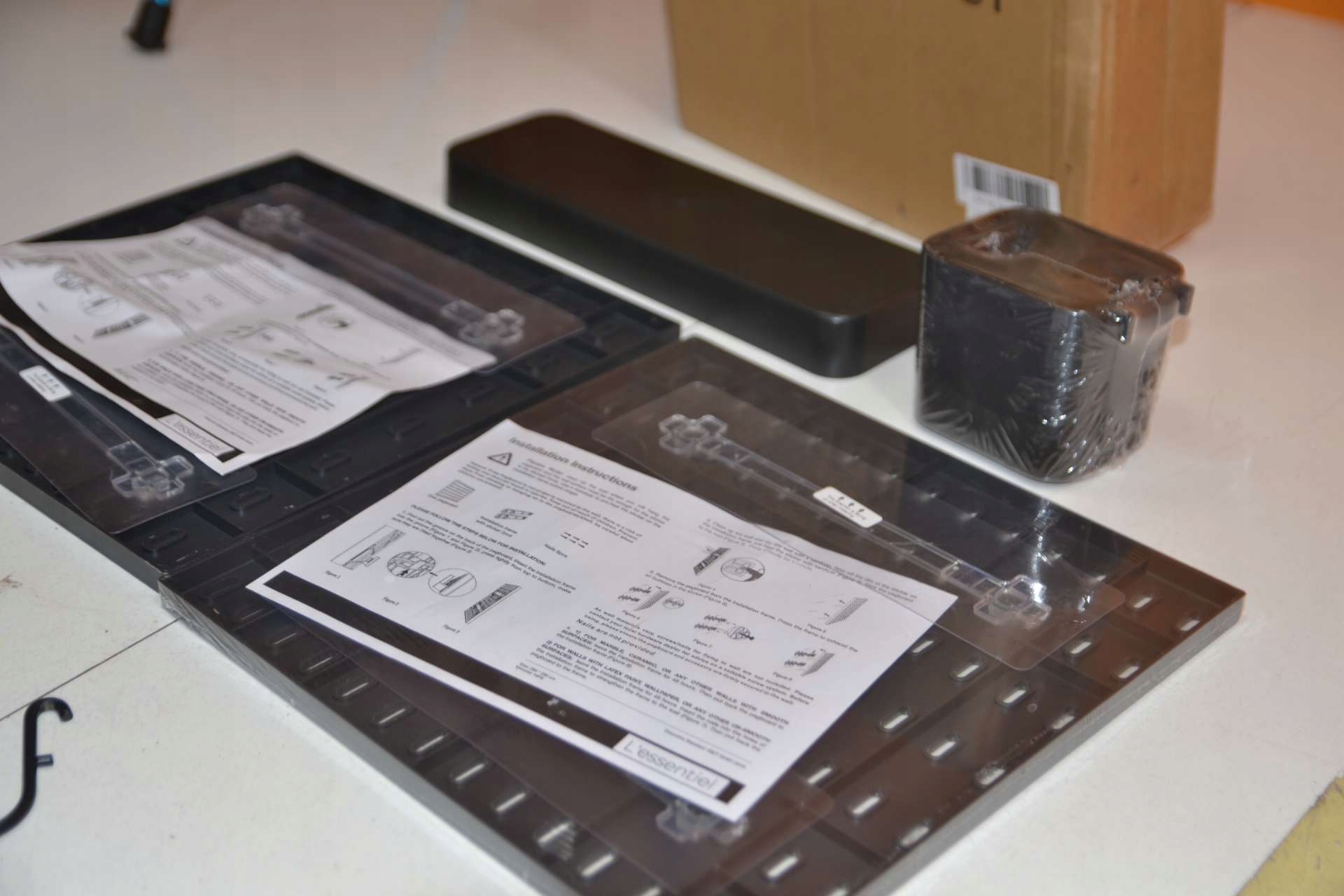 Полное соединение: 4 белых доска, 2 белых полки, 1 белый контейнер, 1 прозрачный контейнер с крышкой, 2 зажимами и 3 крючками. (Размеры приведены в описании ниже)