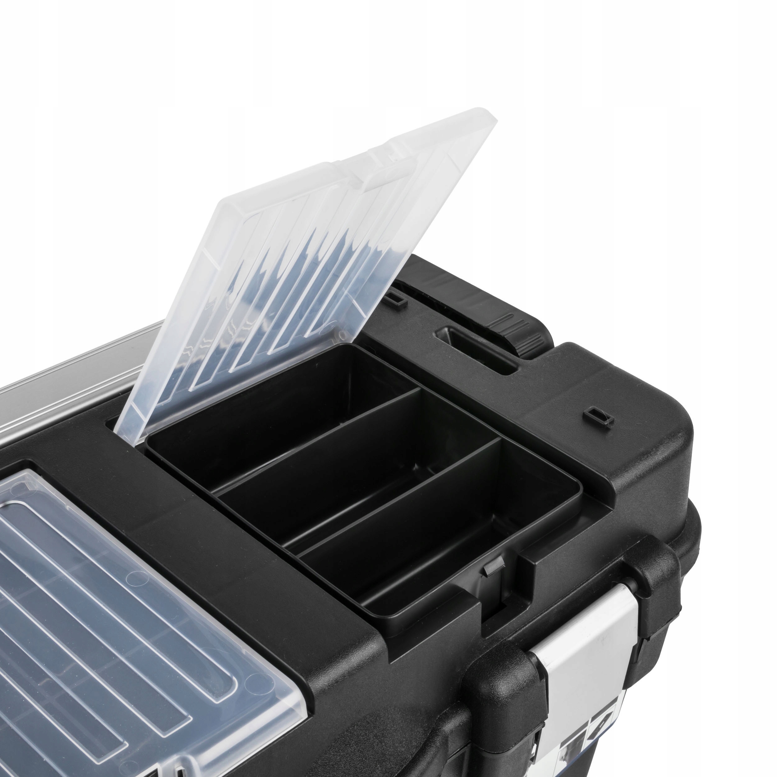 Безусловной отличительной чертой этой коробки является внутренний лоток с дополнительными раскладывающимися органайзерами, благодаря которым мы можем сортировать и брать с собой все необходимые вещи.