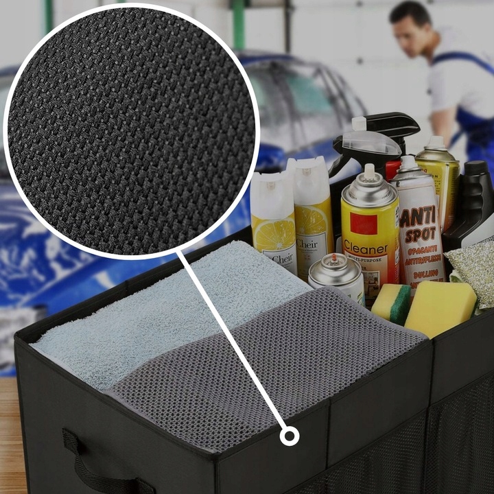 Мы представляем складной органайзер для багажника, который имеет множество карманов для лучшего разделения. Имеет одно большое отделение, два поменьше, а также дополнительные карманы на липучках и сетчатые карманы. Благодаря этому вы сможете легко систематизировать и сортировать хранящиеся предметы. Благодаря множеству карманов в нашем органайзере вы можете эффективно организовывать и хранить самые разные предметы. В большом отделении можно разместить более крупные аксессуары, а в двух меньших — мелкие вещи. Дополнительные карманы на застежке-липучке и сетчатые карманы позволяют безопасно и легко хранить вещи.