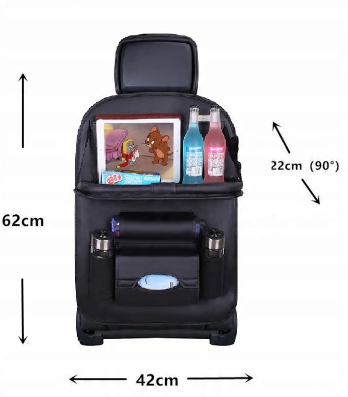 ORGANIZER PÓŁKA STOLIK OCHRANIACZ OSŁONA NA FOTEL SAMOCHODOWY EKOSKÓRA AUTA