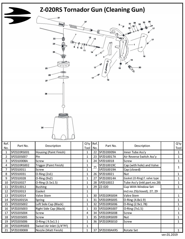 - Новый роторный комплект оснащен специальной пружиной (только модель Z-020RS), которая заставляет пистолет работать еще более импульсивно и, следовательно, лучше очищает.