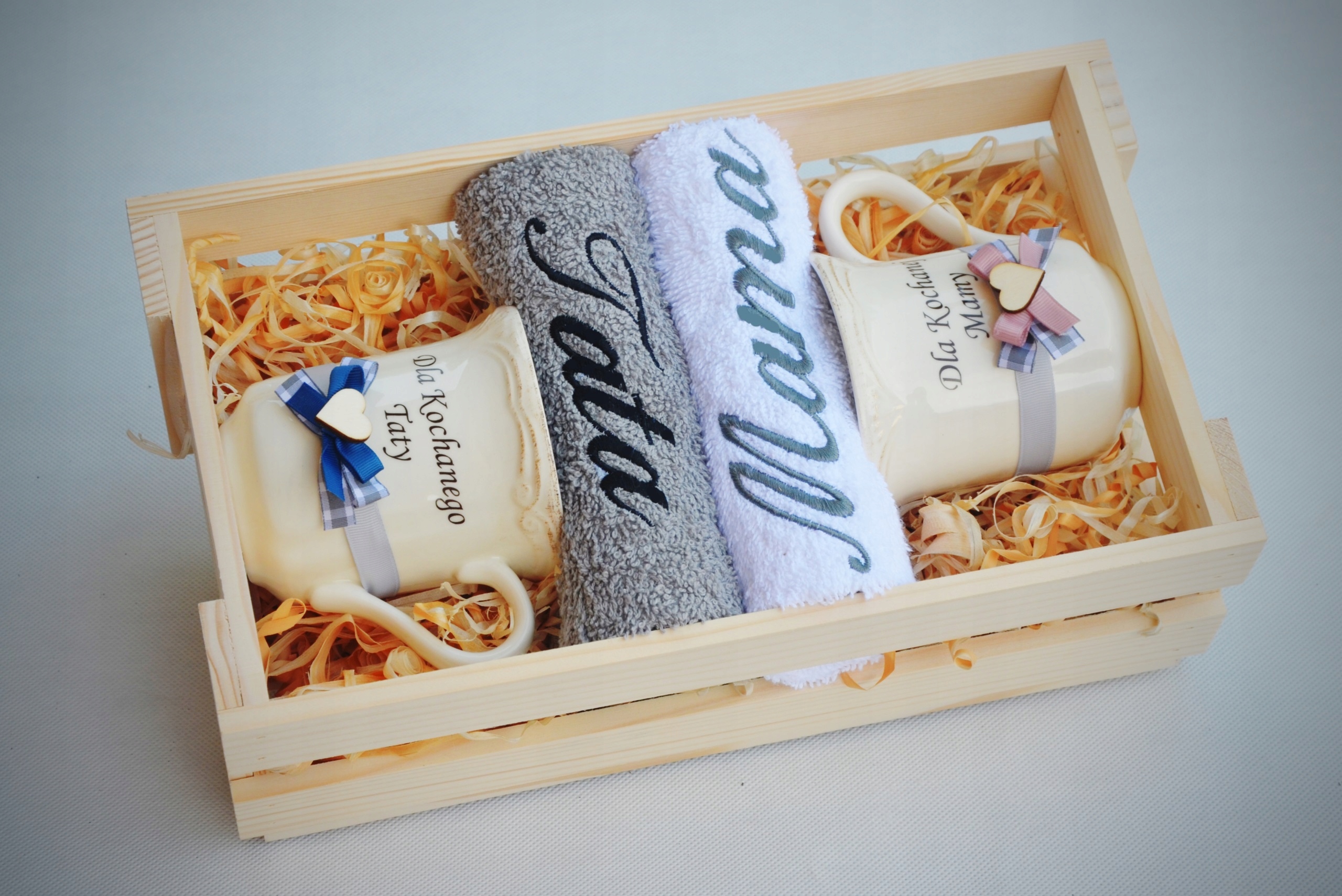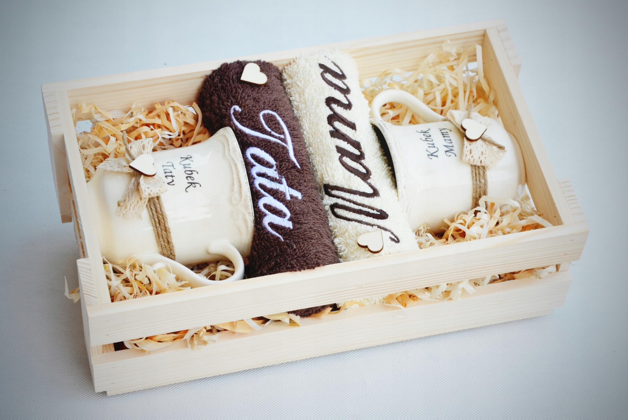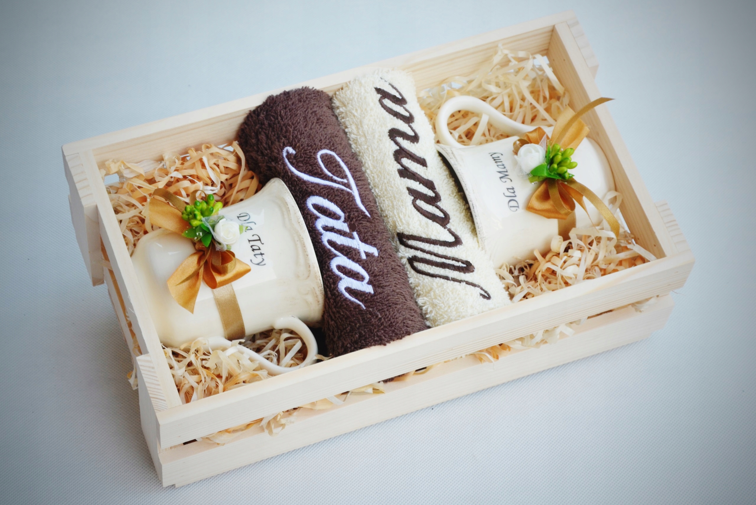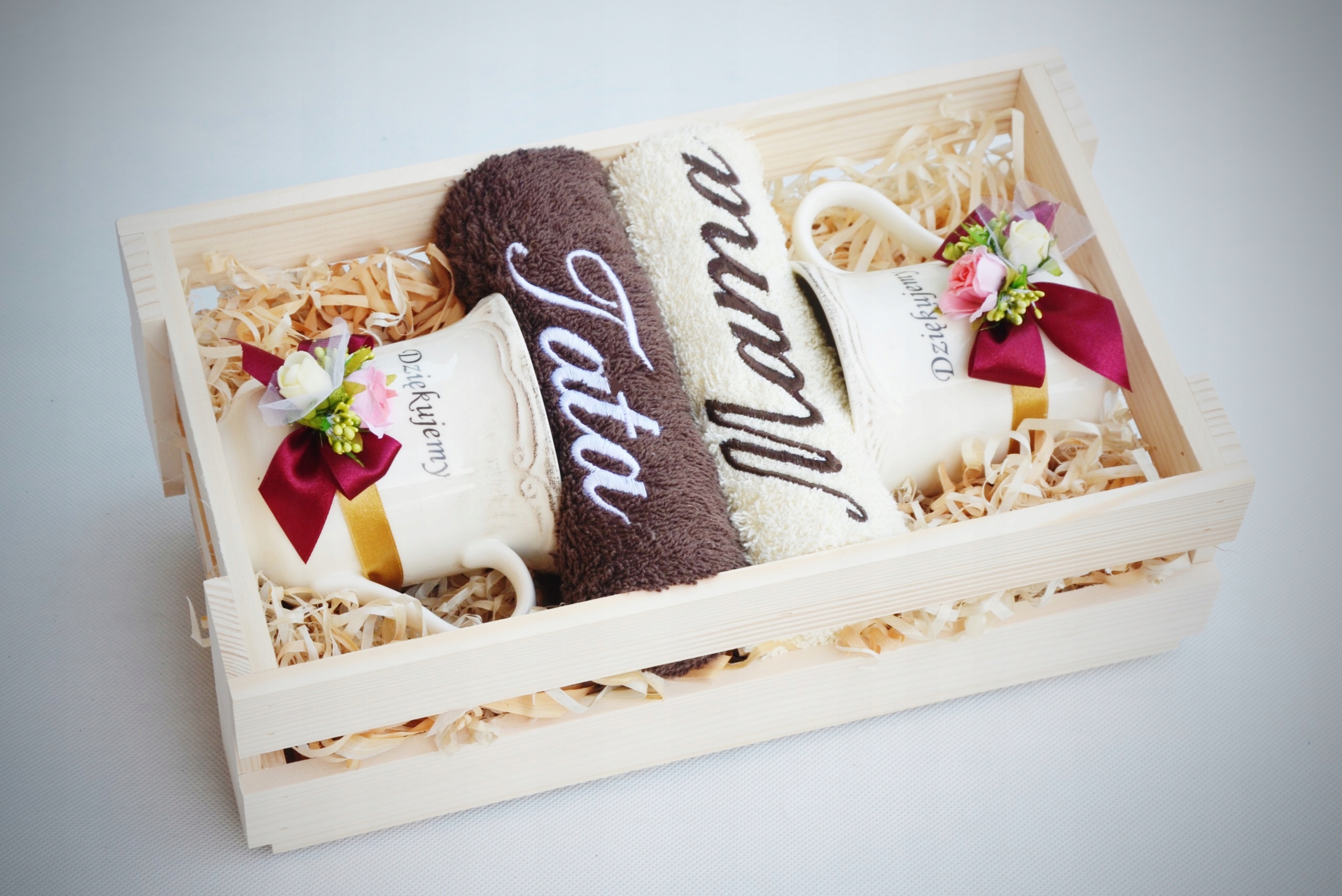 Элегантное СПАСИБО РОДИТЕЛЯМ на свадьбу – практичный и оригинальный набор качественных КРУЖЕК из Ходзежского ФАРФОРА и комплект полотенец Для мамы и папы – уникальный и эксклюзивный набор в деревянной коробке. h1>