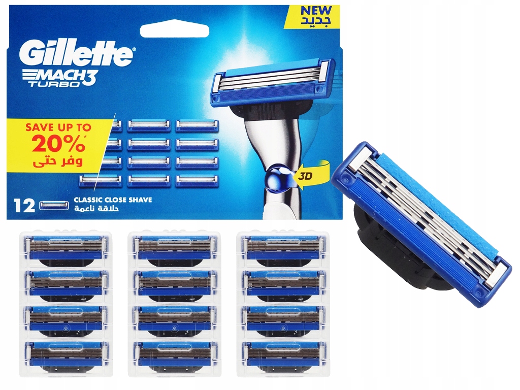 Оригинальные инвентаризации лезвий для Gillette Mach 3 Turbo Razor 12 штук