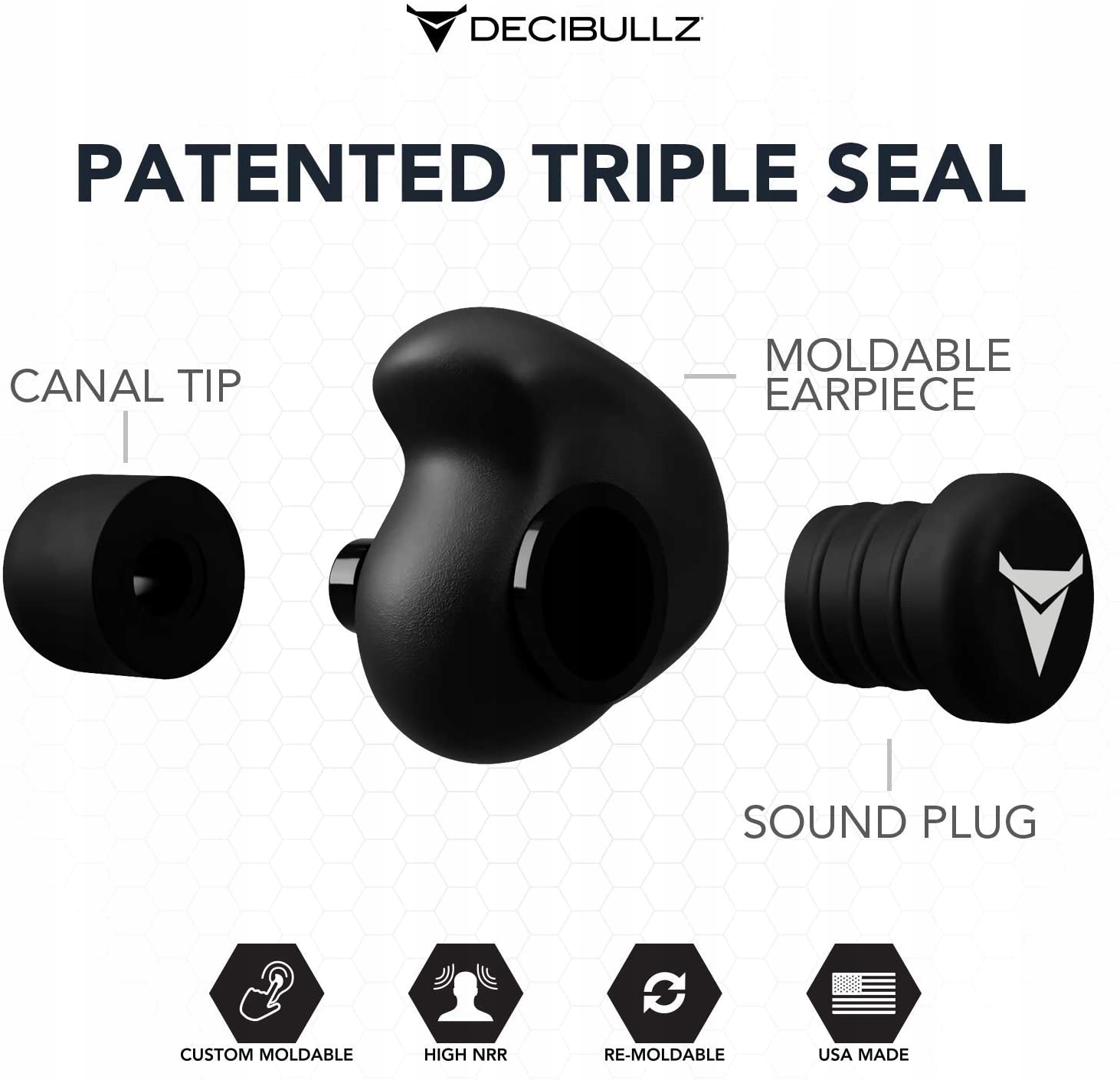deicibullz - это самая оцененная ушная заглушка. Decibullz Custom Lothed Wears можно легко и быстро адаптировать к форме уха. Это создает идеально подходящие ушные штекеры, которые никогда не повредят, никогда не выпадают и не обеспечивают отличную звукоизоляцию. Просто нагрейте термопластичные формы Decibullz в кипящей воде, дайте им немного остыть и сочетать их с ушами. Ну, это! Если вы не получите идеальную посадку в первый раз, Decibullz -единственные неэнд -стандартные ушные заглушки, которые можно сформировать снова. Децибульц производятся в США.