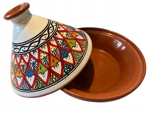 Тажин покрыт глазурью (с восточными, лазурными элементами), призванной предотвратить прилипание продуктов. Любые недостатки, особенности, которые можно считать «огрехами» массового, машинного производства, следует рассматривать как естественную природу изготавливаемого изделия, продукт рук и таланта человека.