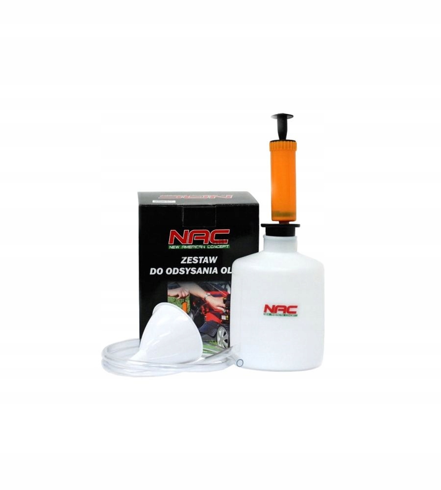 В комплект входит вместительная емкость для собранного масла, насос, облегчающий его всасывание, и резиновый шланг. . Воронка позволяет выливать вещество без риска его пролить.