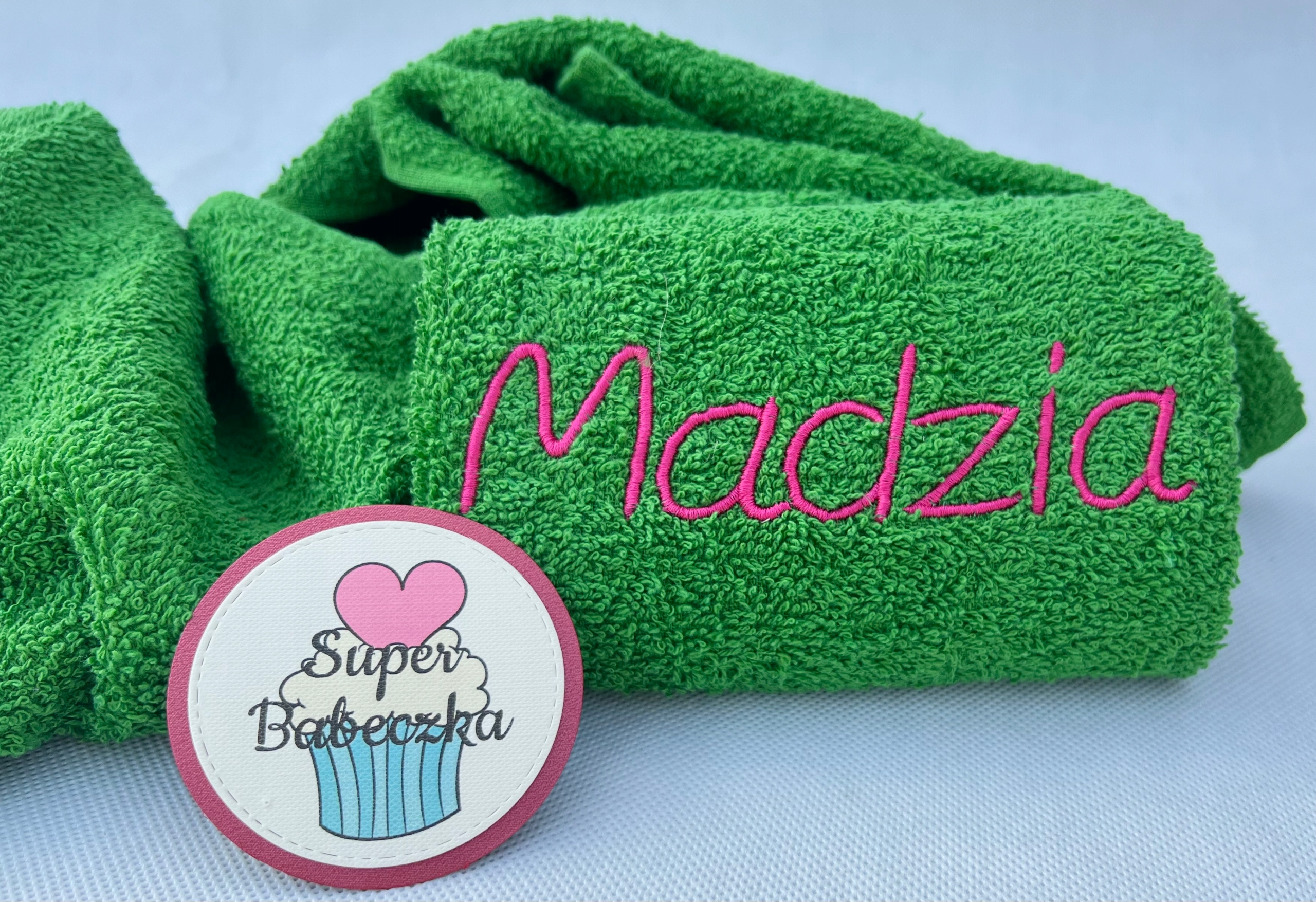 Цвет полотенца красивый, сочный зеленый, розовая вышивка, полотенце мягкое, приятное на ощупь, плотное и мясистое (вес 500г/м2), размер 50х30 см.