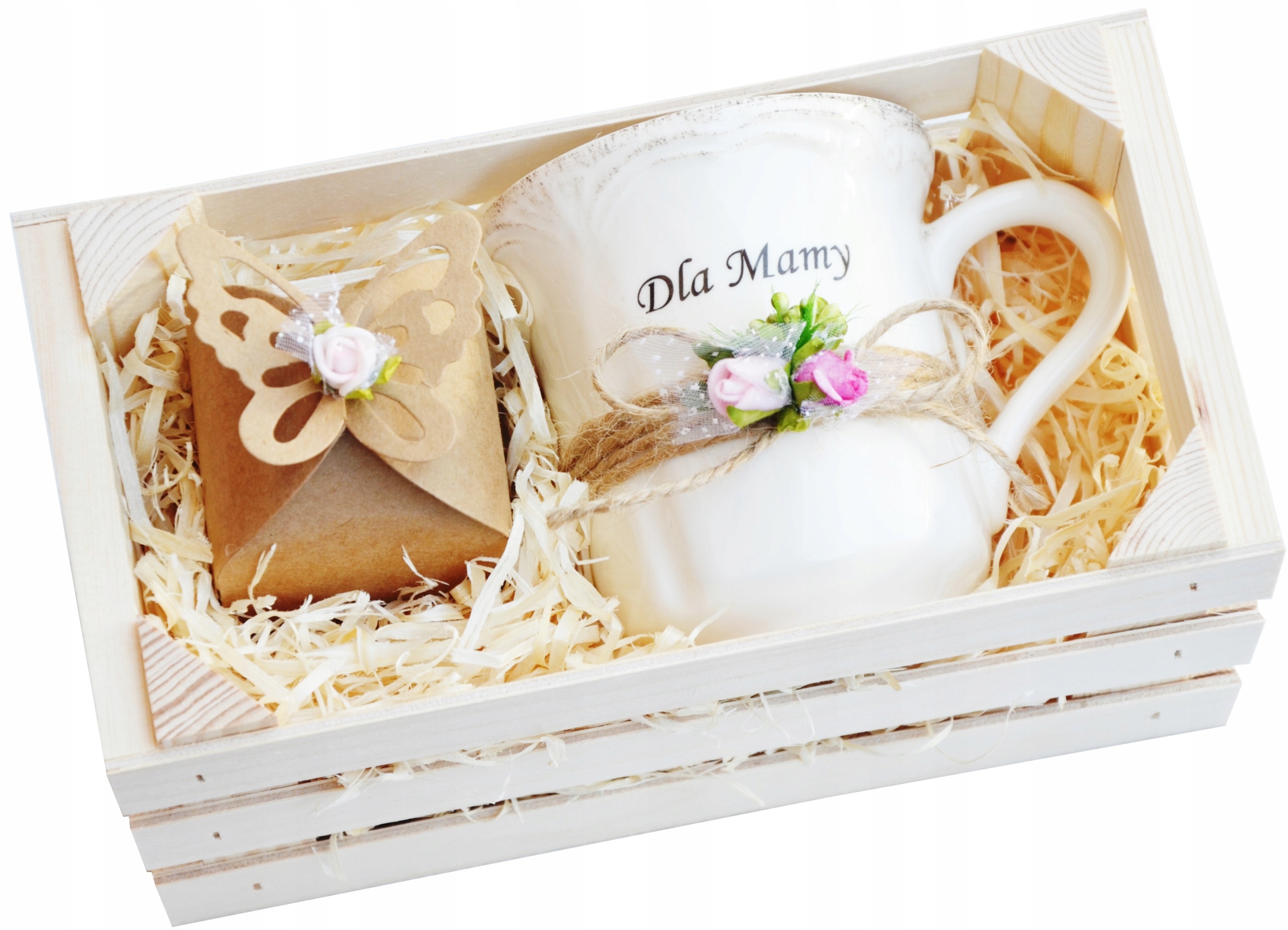 Красивый набор - чай + оригинальная кружка в деревянной коробке - прекрасный подарок ко Дню матери.