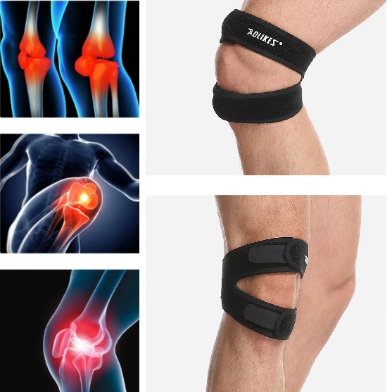 двойная полоса предназначена для того, чтобы сохранить надколенник в нужном месте и не ограничивает кровообращение, благодаря этому воспаление исчезает быстрее. Шелконный вставок точно охватывает колено и осторожно массирует место под надколенником, улучшает кровообращение, что означает, что поврежденные ткани заживают гораздо быстрее, а боль утихнет. Передняя часть полосы имеет мягкую начинку, которая поглощает вибрацию во время физической активности в области надколенника и связок. Использование этой полосы приносит облегчение человеку, страдающему от воспаления надколенника, вызванного частым прыжком по бегу, и человека, страдающего раздражением надколенника.