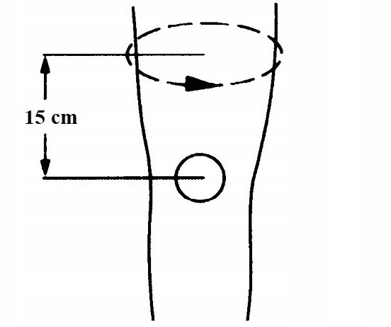 Чтобы выбрать размер, измерьте обхват бедра на расстоянии 15 см от центра колена.