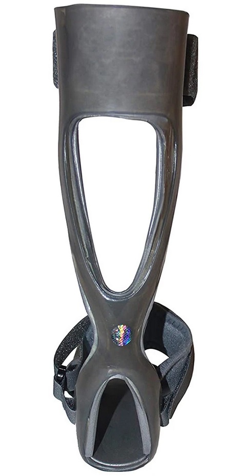 Опора откидной стопы изготовлена из профилированной полипропиленовой шины. Анатомическую стельку можно смоделировать с помощью термофена (т.е. тепловой пушки). Толщина стенок камеры уменьшена до минимума, чтобы обеспечить конфиденциальность при использовании. При ходьбе шина обладает упругими свойствами, что обеспечивает поддержку при ходьбе. Три ремня по окружности обеспечивают некоторую стабилизацию и застегиваются на липучки, что позволяет легко регулировать натяжение.