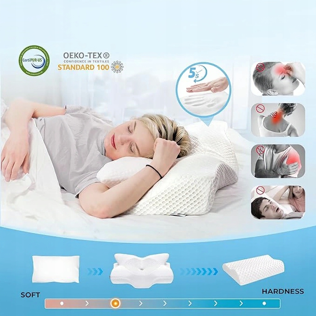 ОРТОПЕДИЧЕСКАЯ ПОДУШКА, БЕЛАЯ ПЕНА «MEMORY» ПРОТИВ БОЛИ В СПИНЕ И ХРАПА