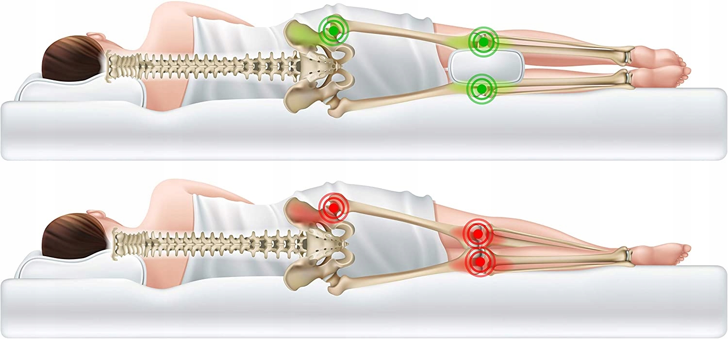 - идеально облегает колени, икры и лодыжки и обеспечивает максимальную поддержку и комфорт во время сна, обеспечивая лучшее выравнивание позвоночника и бедер, облегчение болей в суставах позвоночника, бедер, коленей, икр и лодыжек, облегчение ишиаса