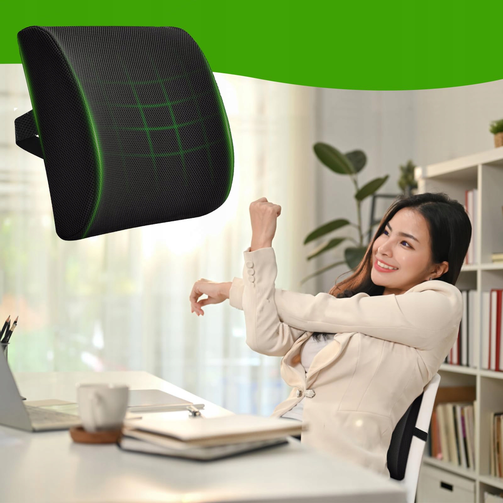 Опорная подушка подходит для любого стула, потому что она оснащена регулируемыми ремнями и прочными пряжками, которые эффективно предотвращают скольжение подушки. Опора поясничного отдела позвоночника может использоваться для автомобильных сидений, офисных стульев, инвалидных колясок и обеденных стульев. Подушка спинки имеет размеры 32 x 34 x 12 см, что делает ее подходящим спутником в путешествии.