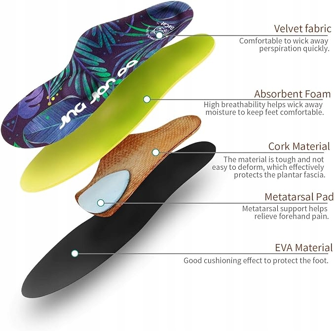 - 【 Супинатор 】Ортопедические стельки с супинатором увеличивают площадь поверхности, на которой работает подошвенная фасция, и распределяют давление стопы, что эффективно устраняет плоскостопие, подошвенный фасциит, метатарзалгия, тендинит ахиллова сухожилия, чрезмерная пронация, боль в пятках и стопах.