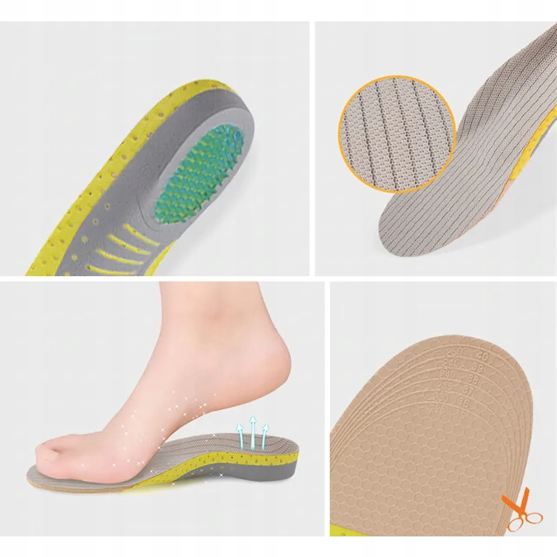 Усиленная вставка на пятке защищает ее от слишком сильных ударов о землю, которые со временем могут стать болезненными. Стоит обратить внимание на правильную форму, а также на легкость и гибкость пены EVA и гелевого усиления на пятке - все это означает, что стельки должны быть обязательным элементом в каждом гардеробе, независимо от уровня физической активности. Стелька идеально прилегает к подошве стопы, имеет дышащий материал, размер можно регулировать, обрезав стельку.